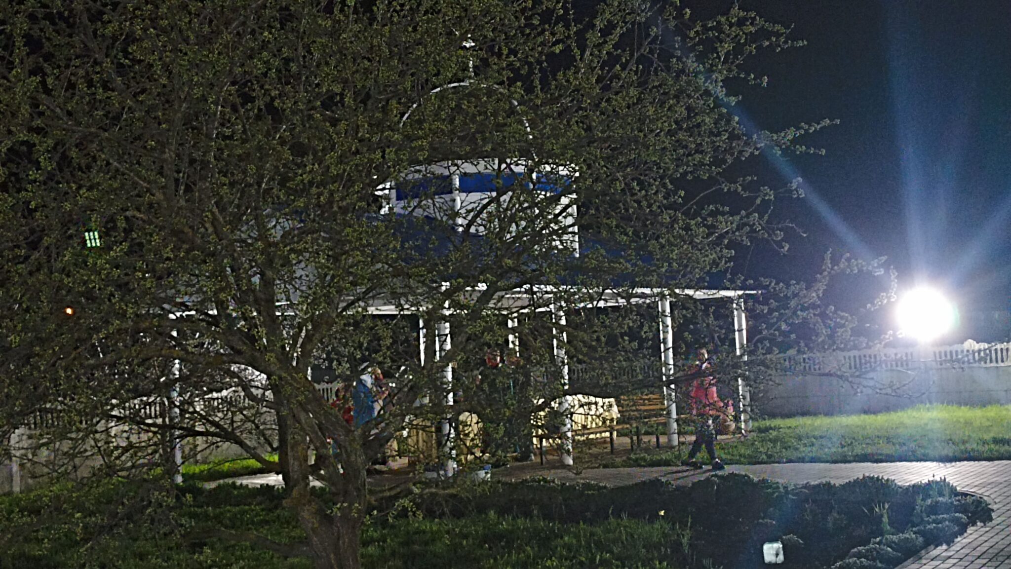 После ночного богослужения во дворе Успенского храма состоялось чаепитие для прихожан храма.