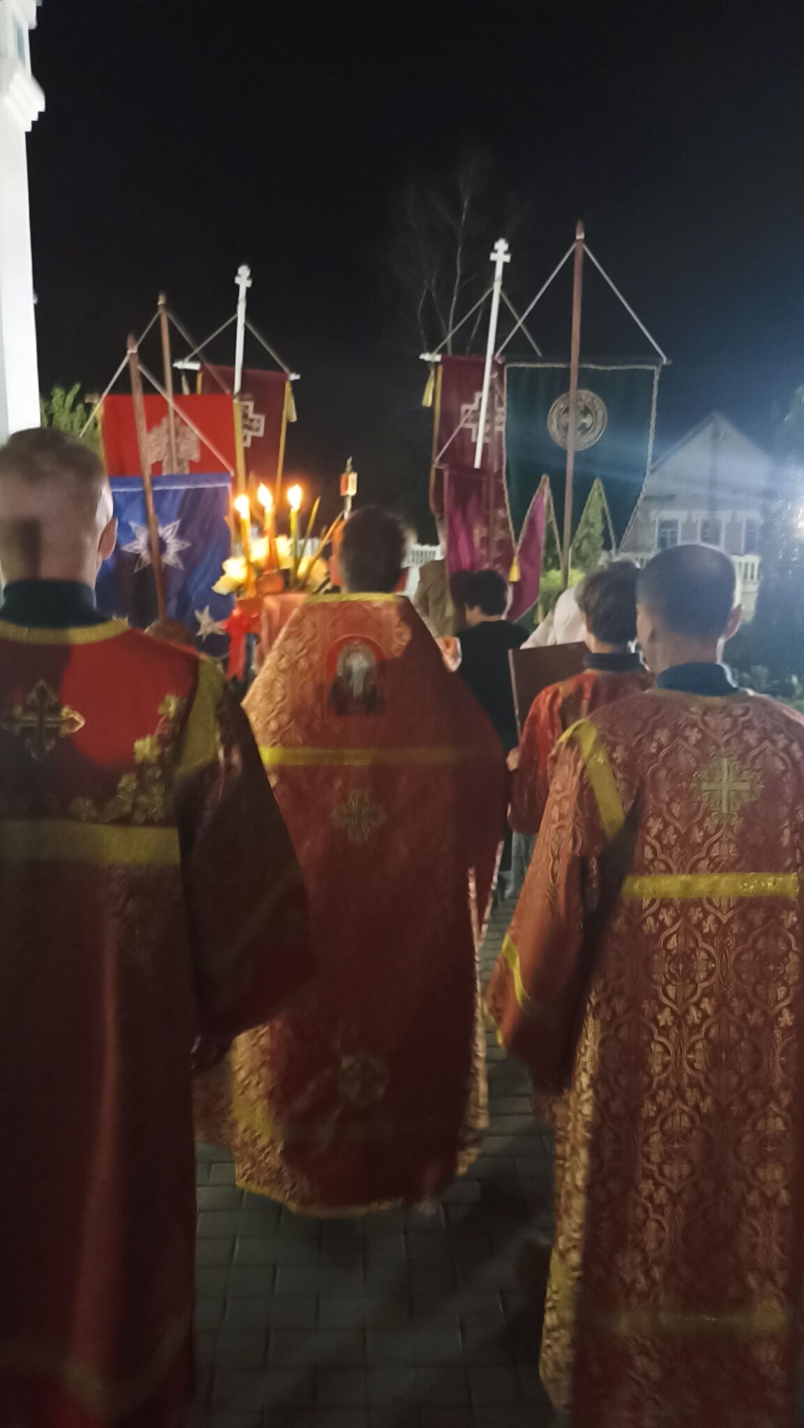 Под пение стихиры «Воскресение Твое, Христе Спасе» и колокольный трезвон был совершен крестный ход вокруг храма.