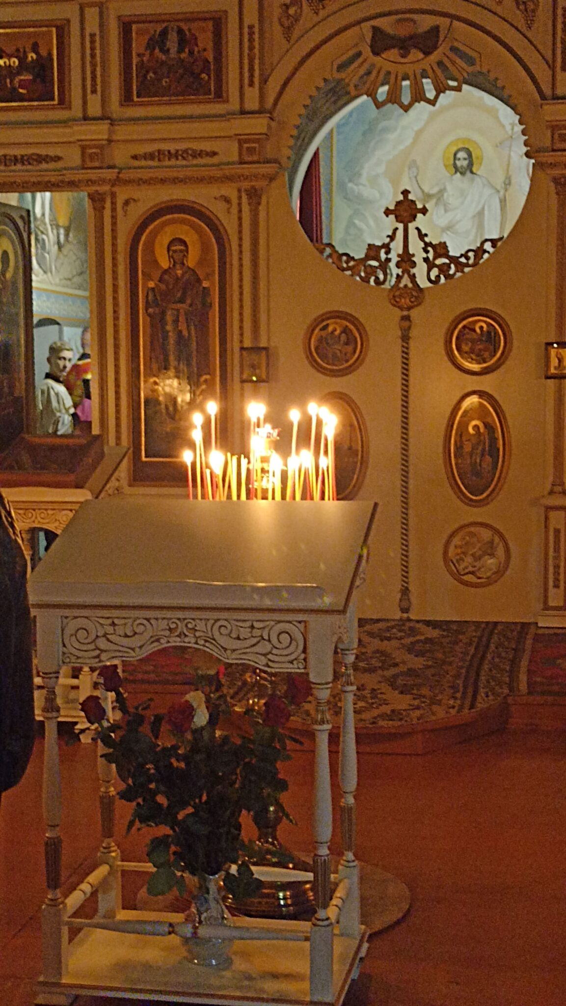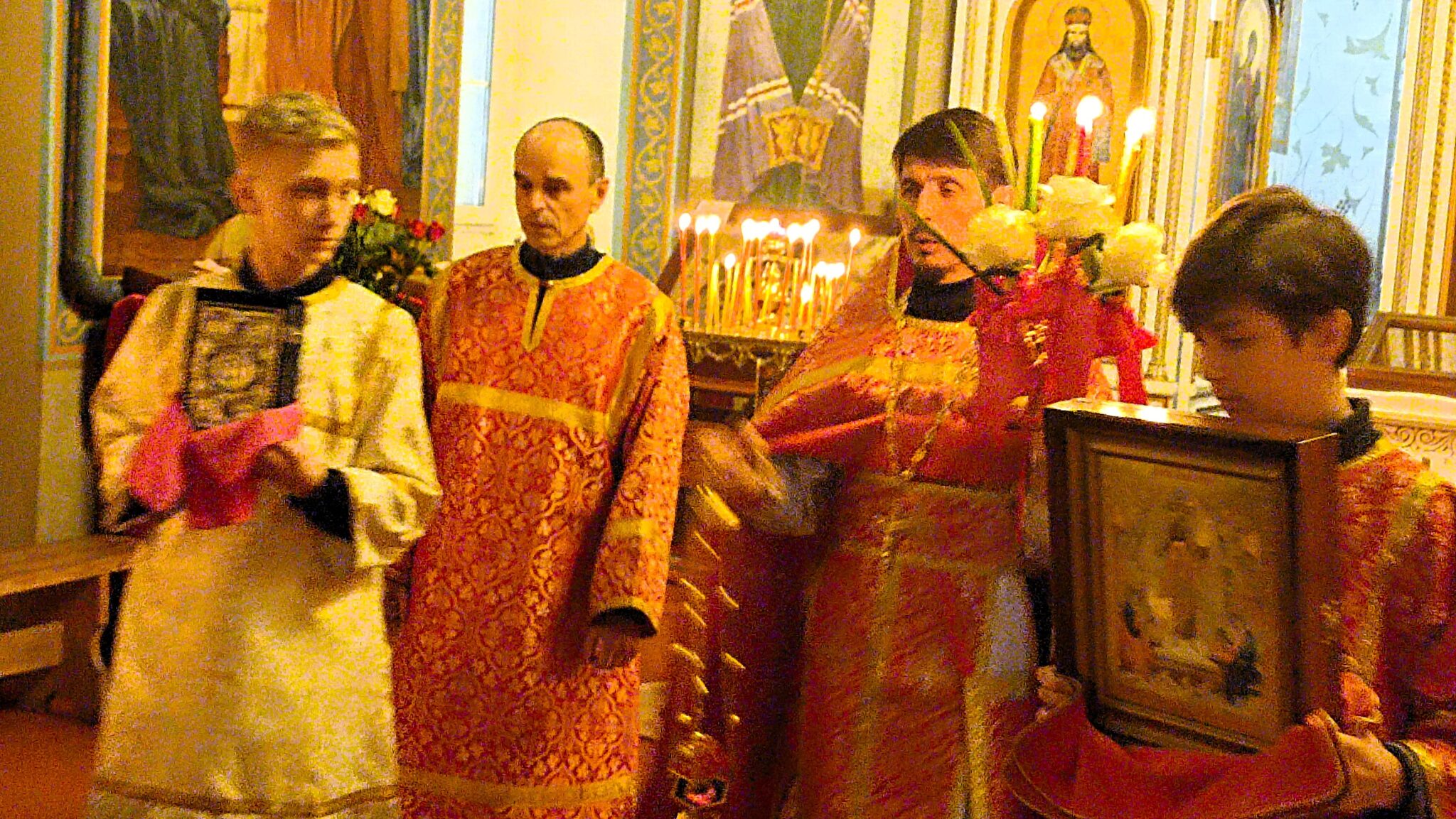 Перед пасхальной утреней, во время полунощницы, отец Андрей унес Плащаницу в алтарь и положил на престол, где она останется до отдания Пасхи.