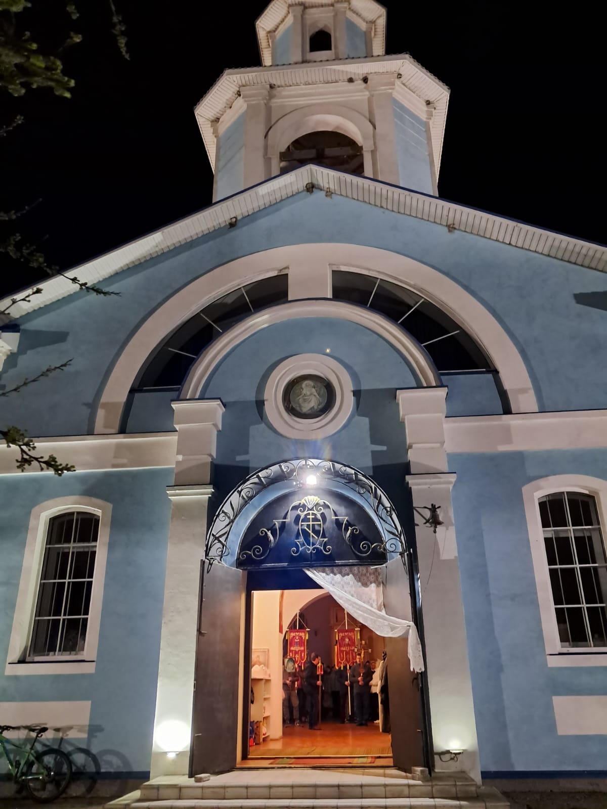 Во время Евхаристического канона совершилось преложение Святых Даров. Все собравшиеся причастились Святых Христовых Таин. Во время Причастия пели: «Христос воскресе из мертвых, смертию смерть поправ, и сущим во гробех живот даровав!»