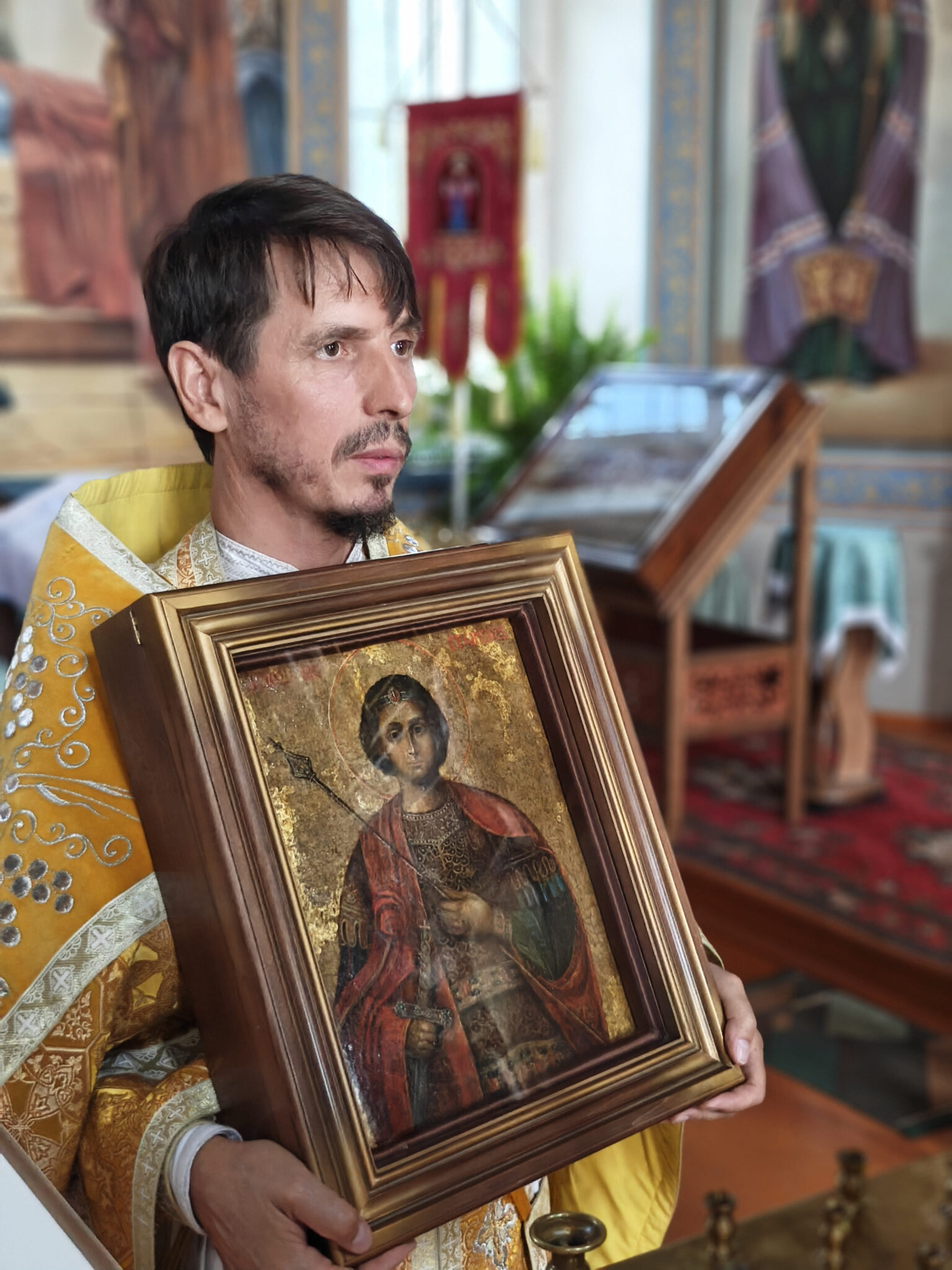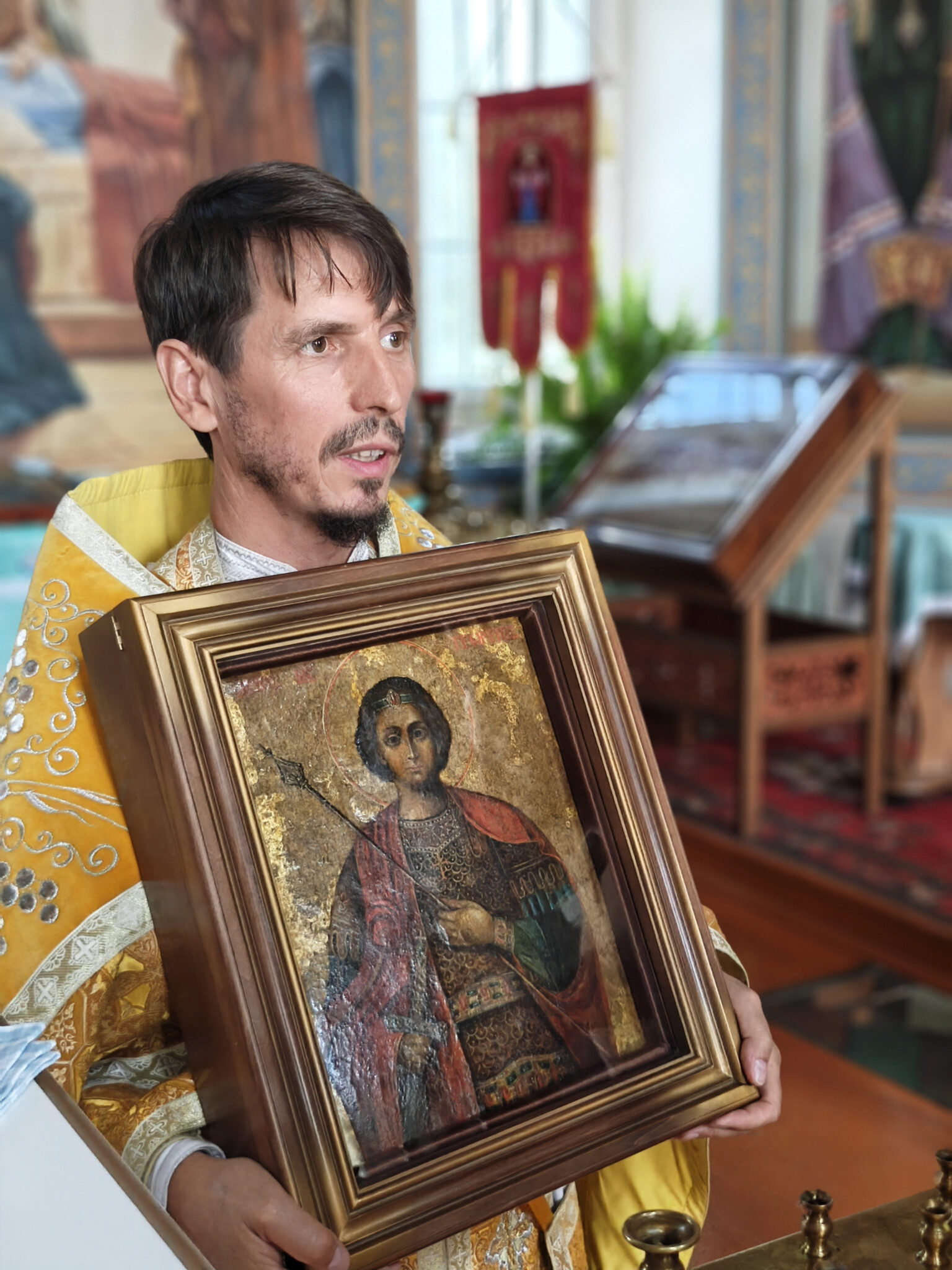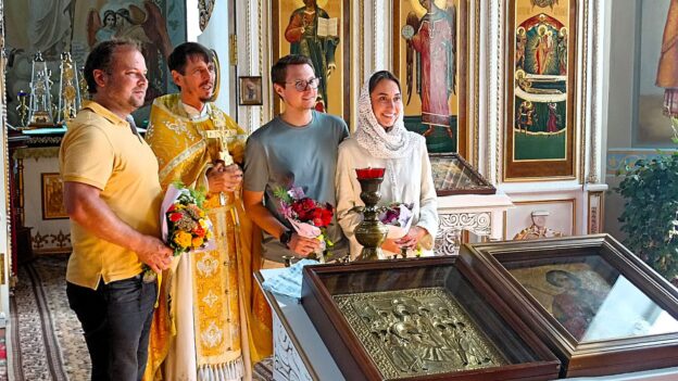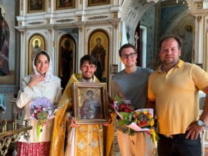 В субботу приход Успенского храма встречал долгожданный образ святого Георгия Победоносца. Икона долгое время находилась на реставрации в Московском музее древнерусской культуры и искусства имени прп. Андрея Рублева. И вот, наконец, торжественно прибыла в наш храм, бережно сопровождаемая нашими новыми друзьями из Москвы.