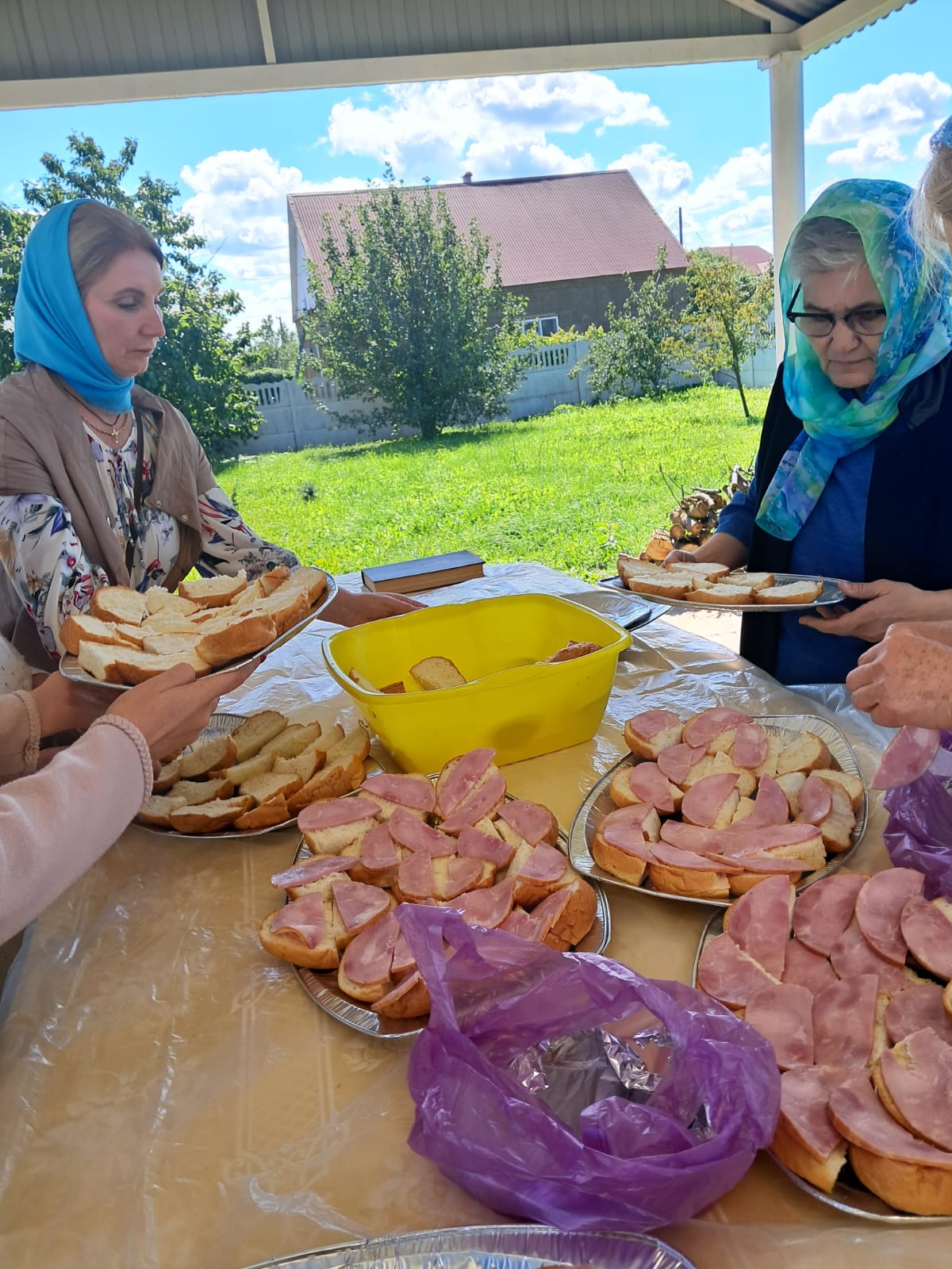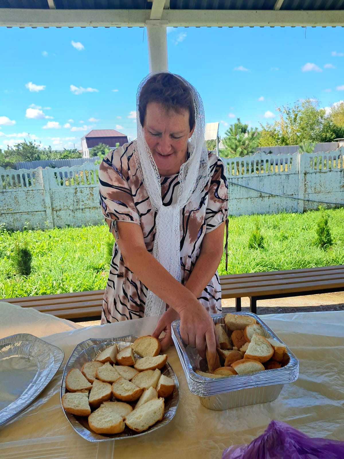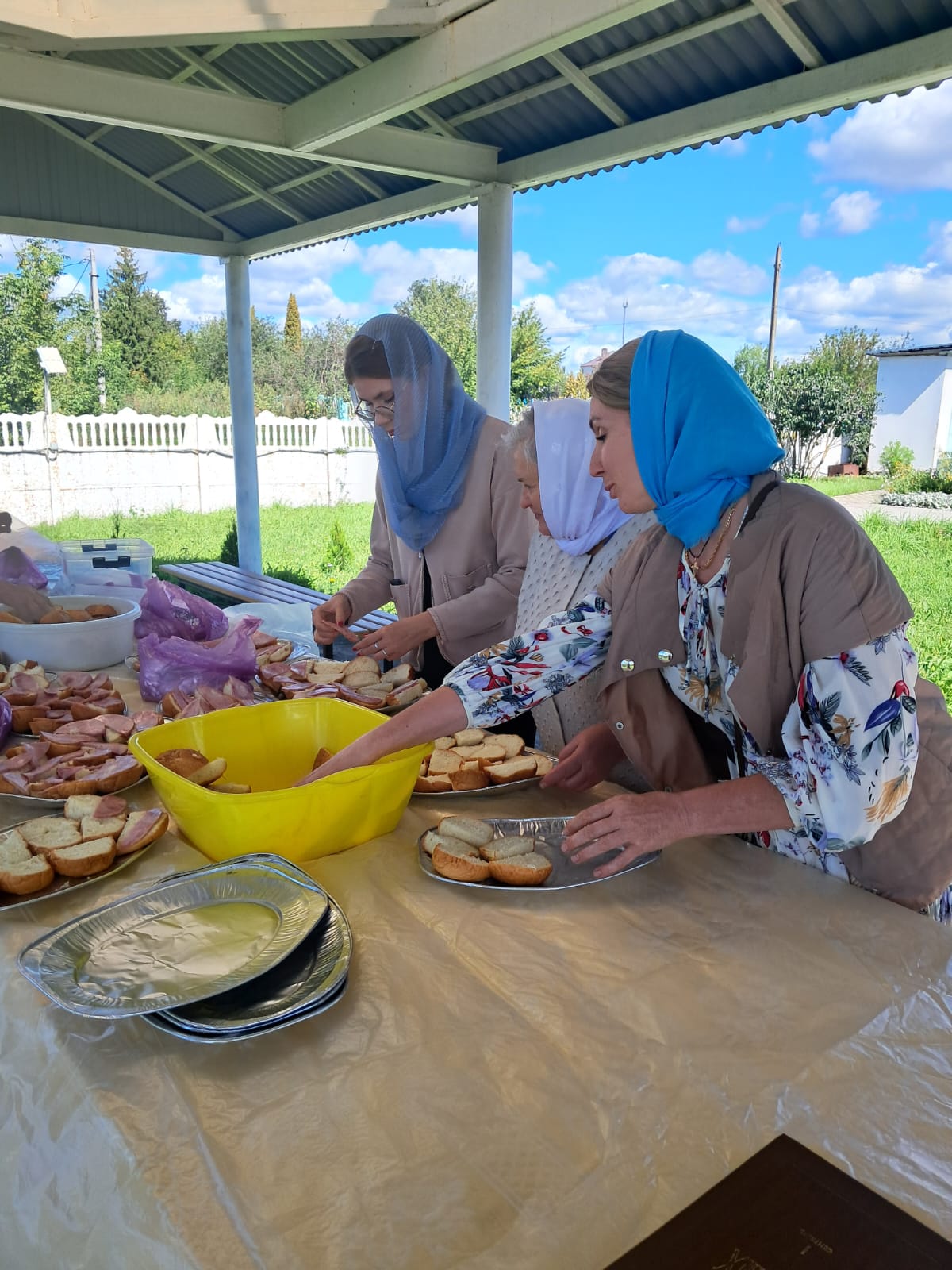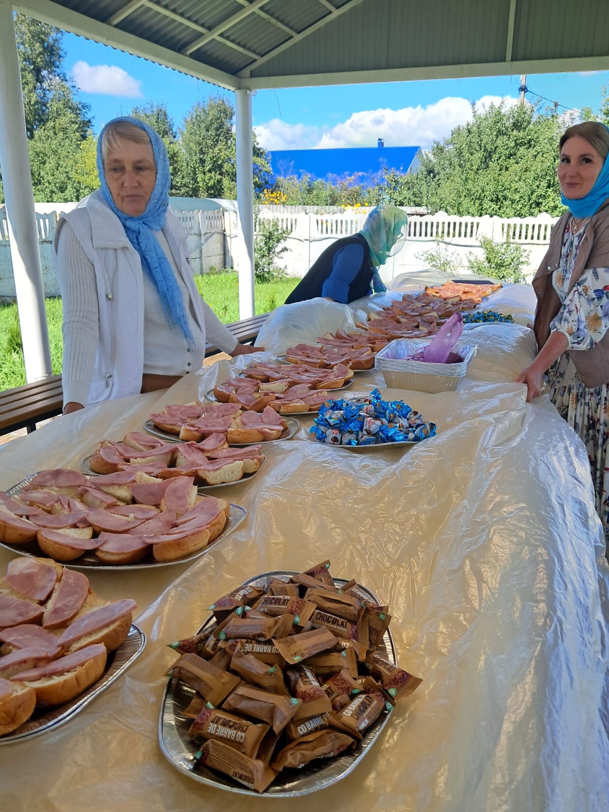 Во дворе храма всем прихожанам приготовили праздничное угощение.