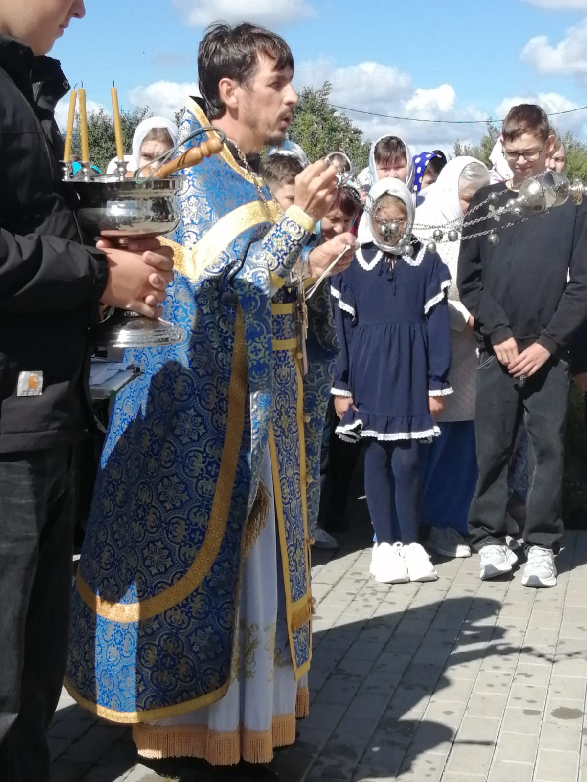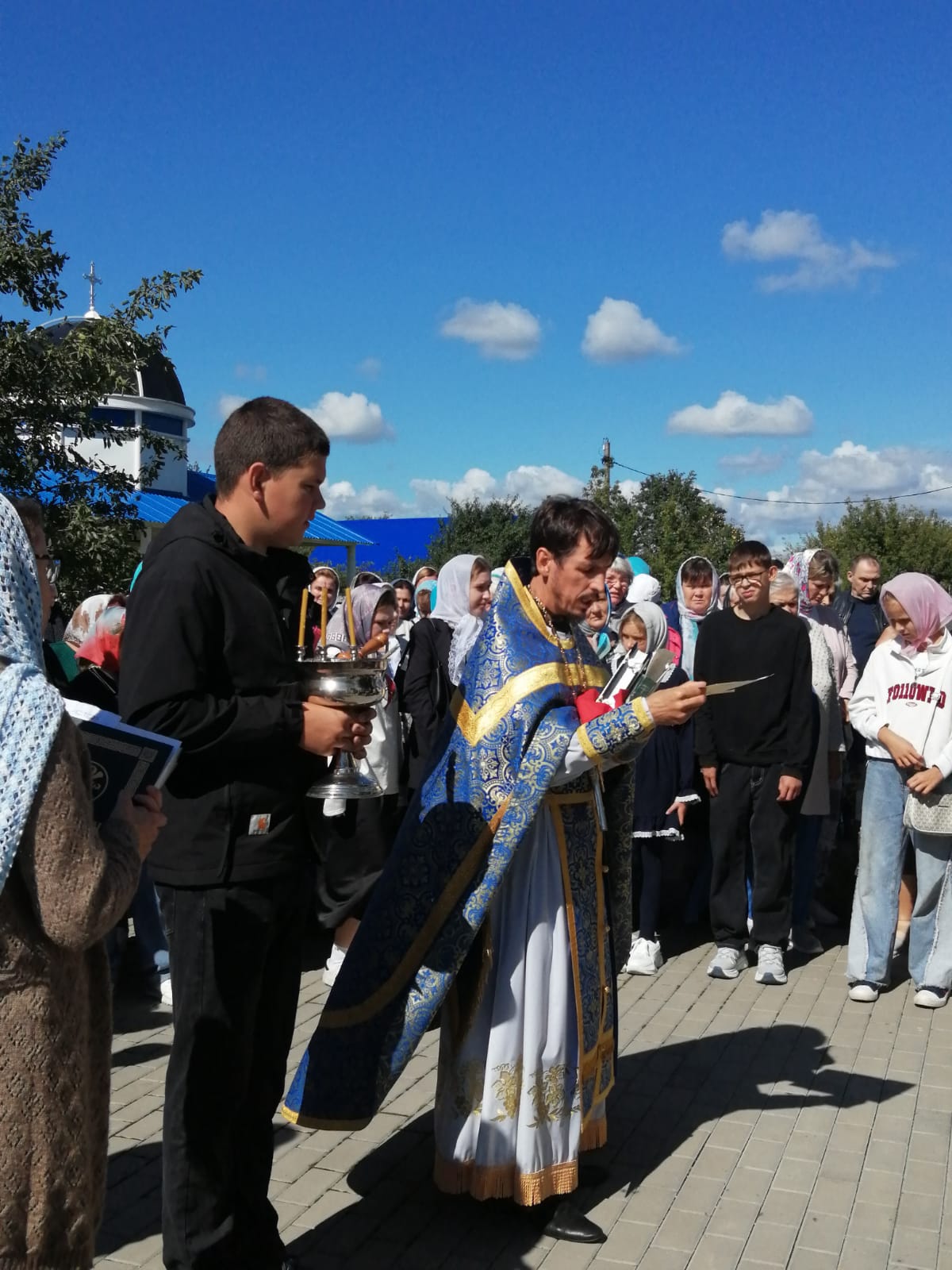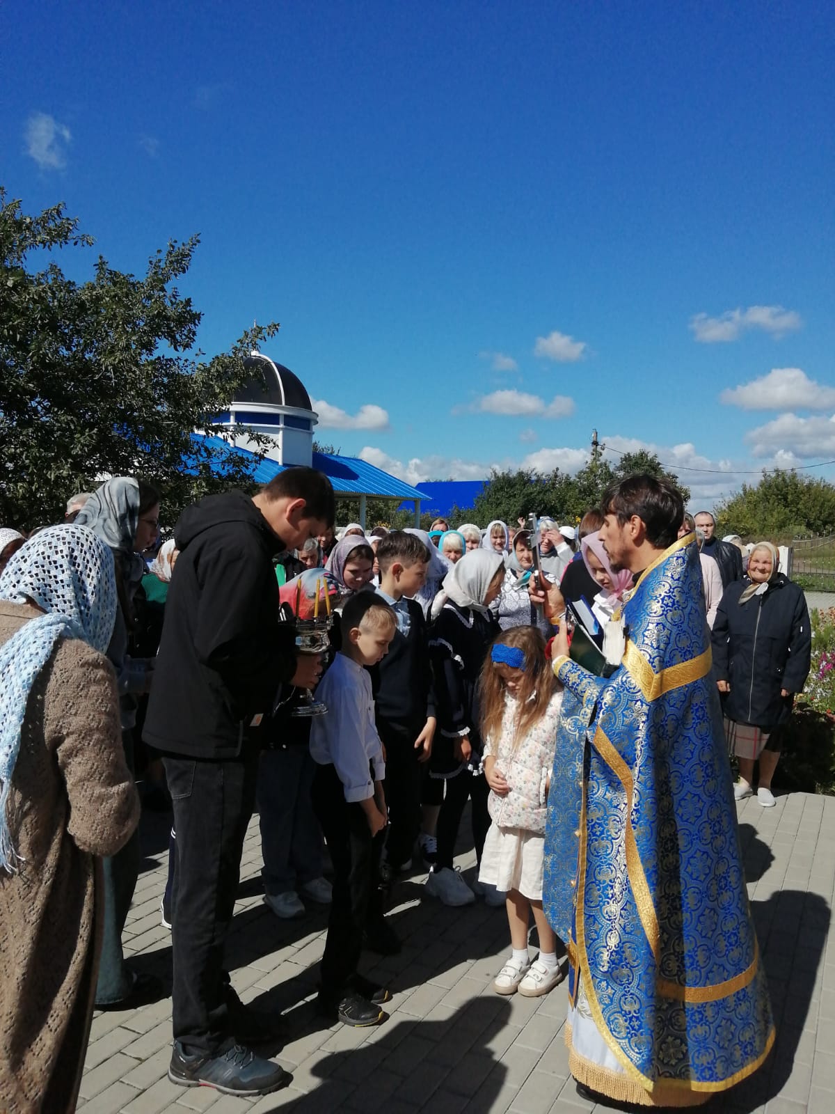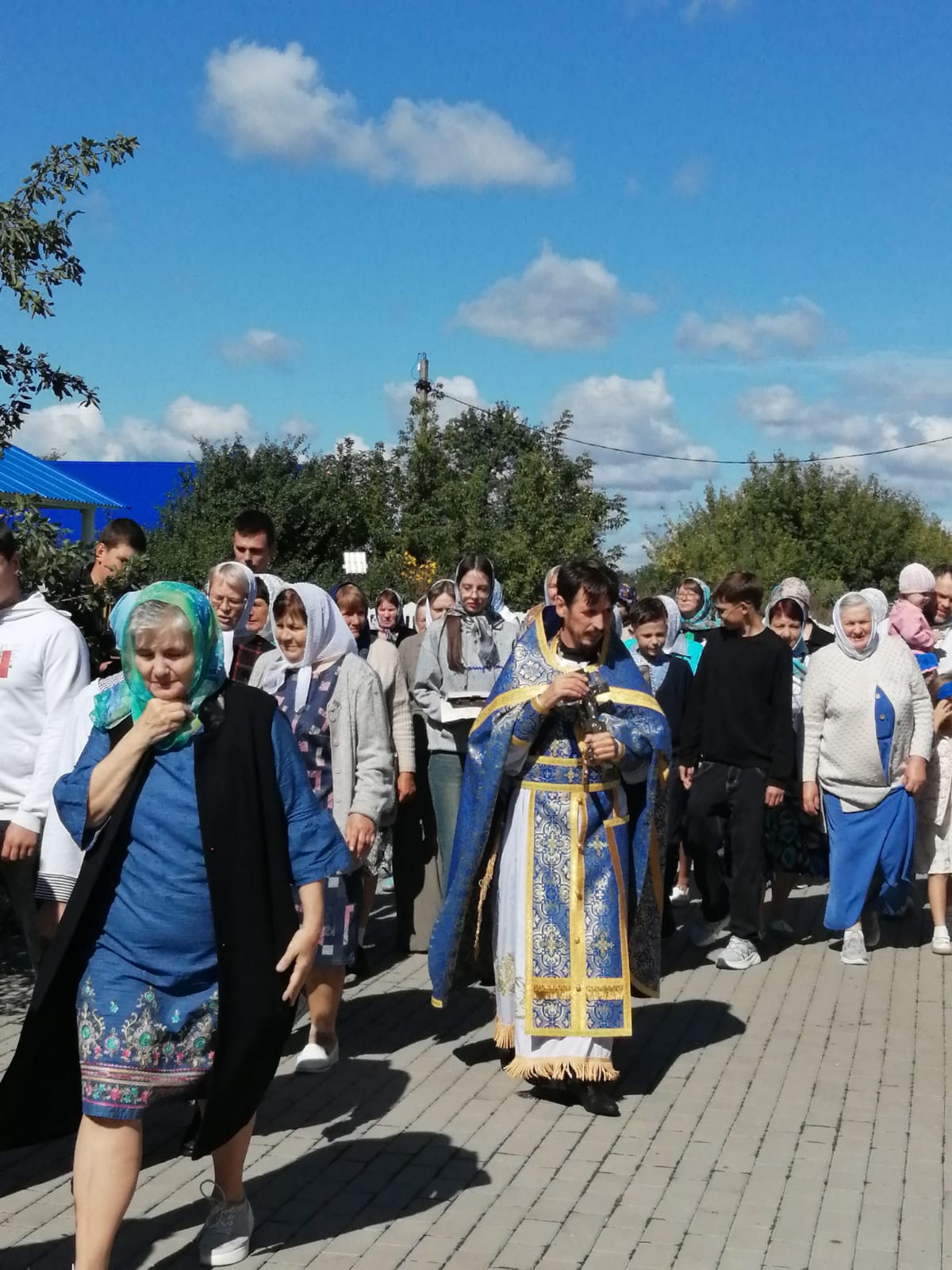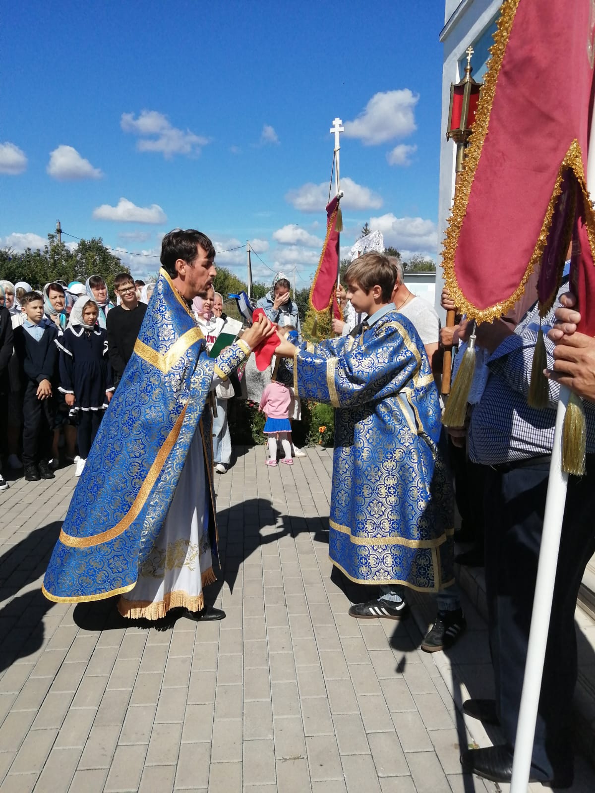 По окончании Божественной Литургии был совершен праздничный Крестный ход вокруг храма с поминовением живых и усопших и молебствием об учении отроков.