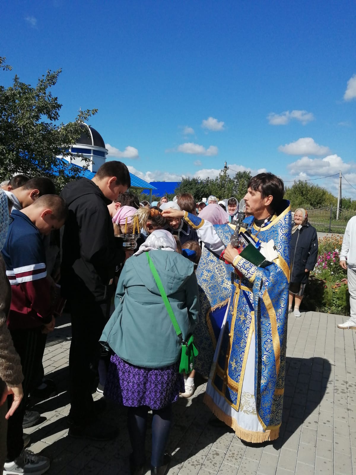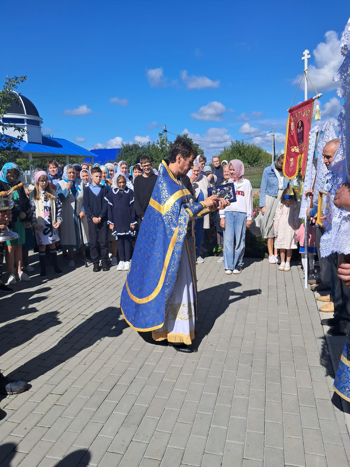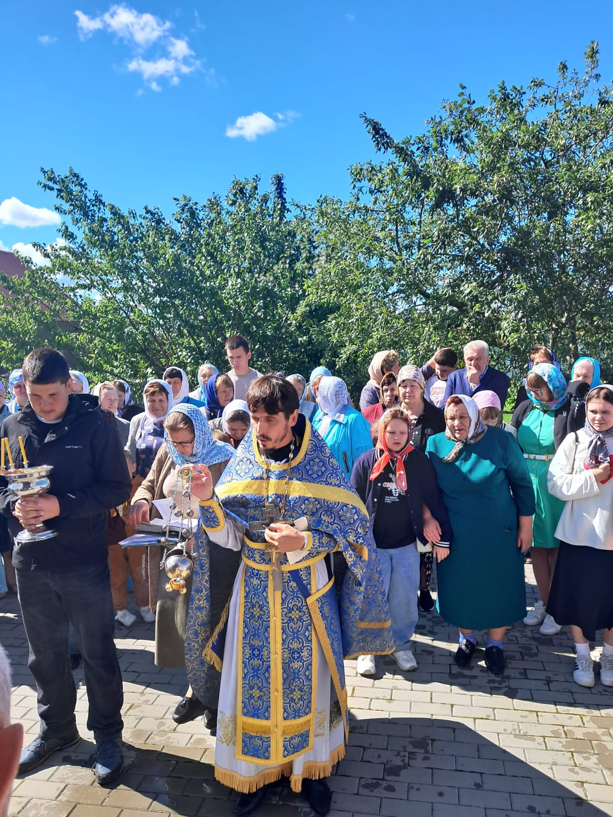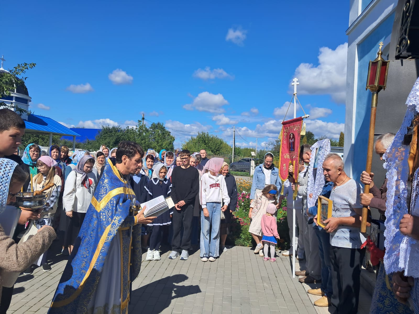 По окончании Божественной Литургии был совершен праздничный Крестный ход вокруг храма с поминовением живых и усопших и молебствием об учении отроков.