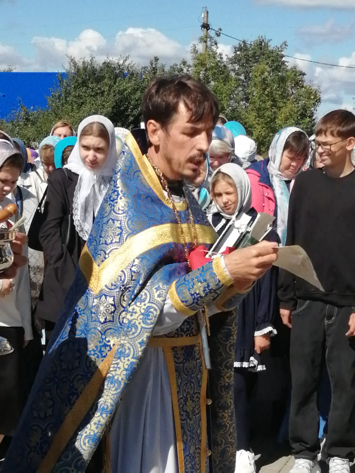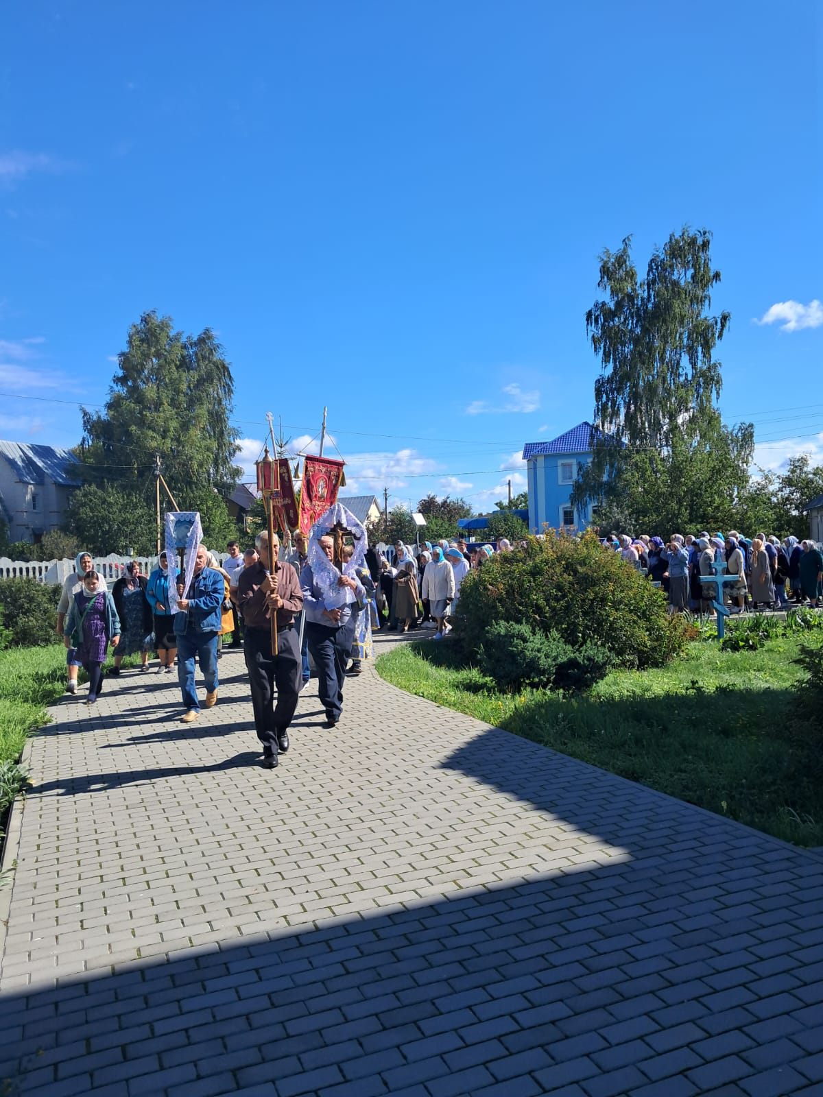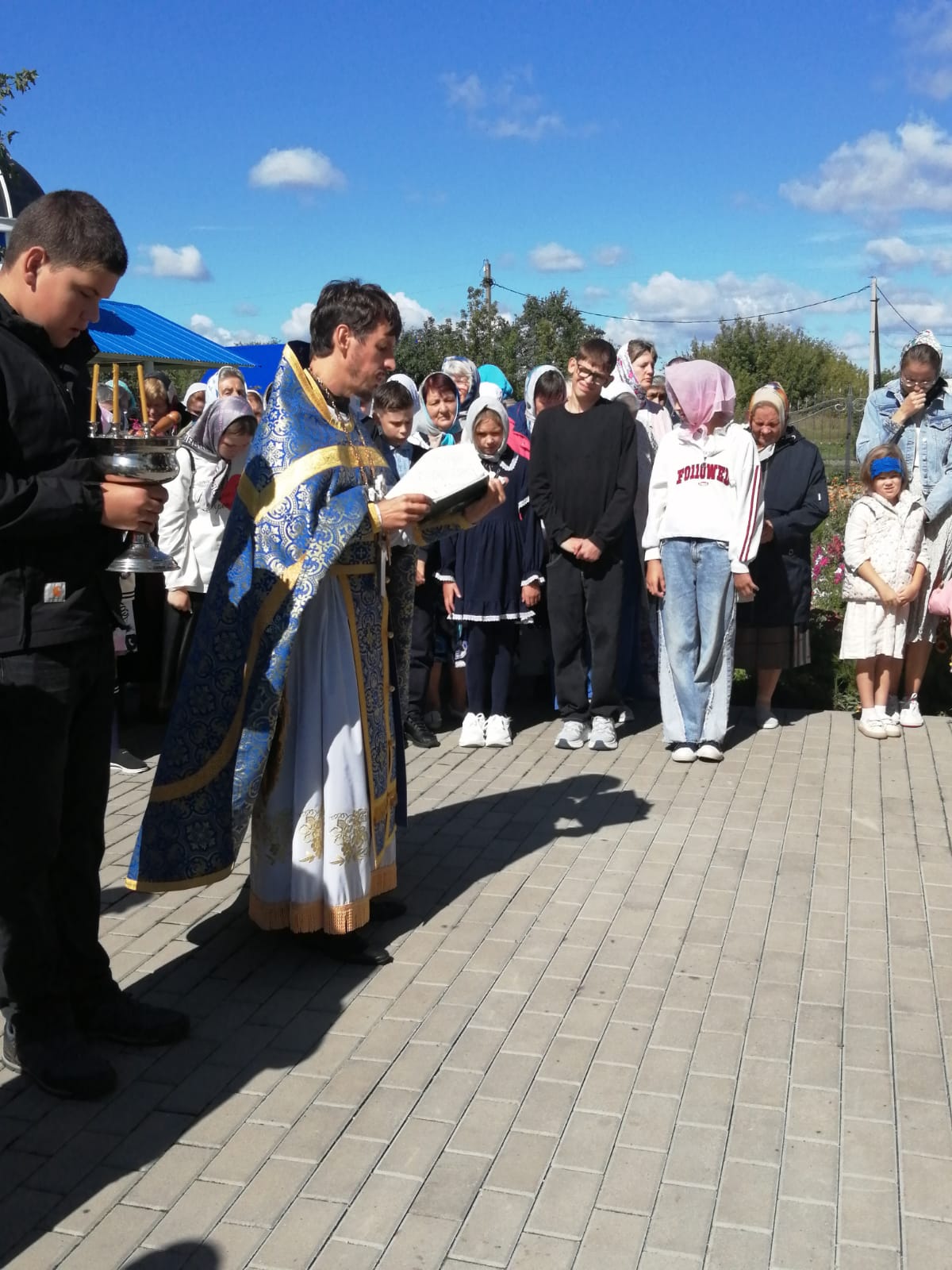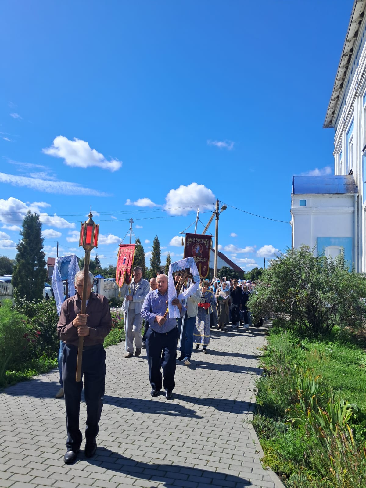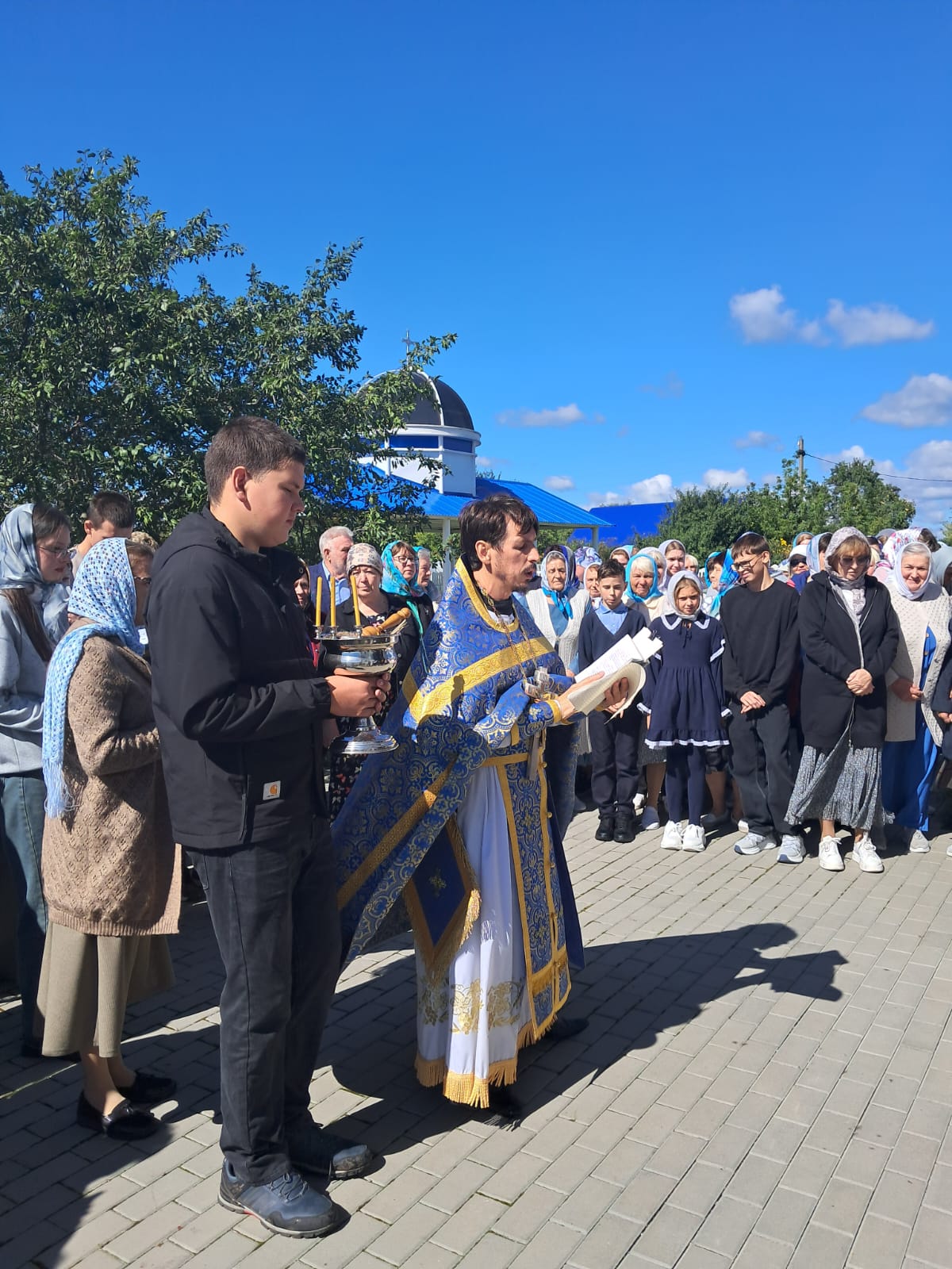 По окончании Божественной Литургии был совершен праздничный Крестный ход вокруг храма с поминовением живых и усопших и молебствием об учении отроков.