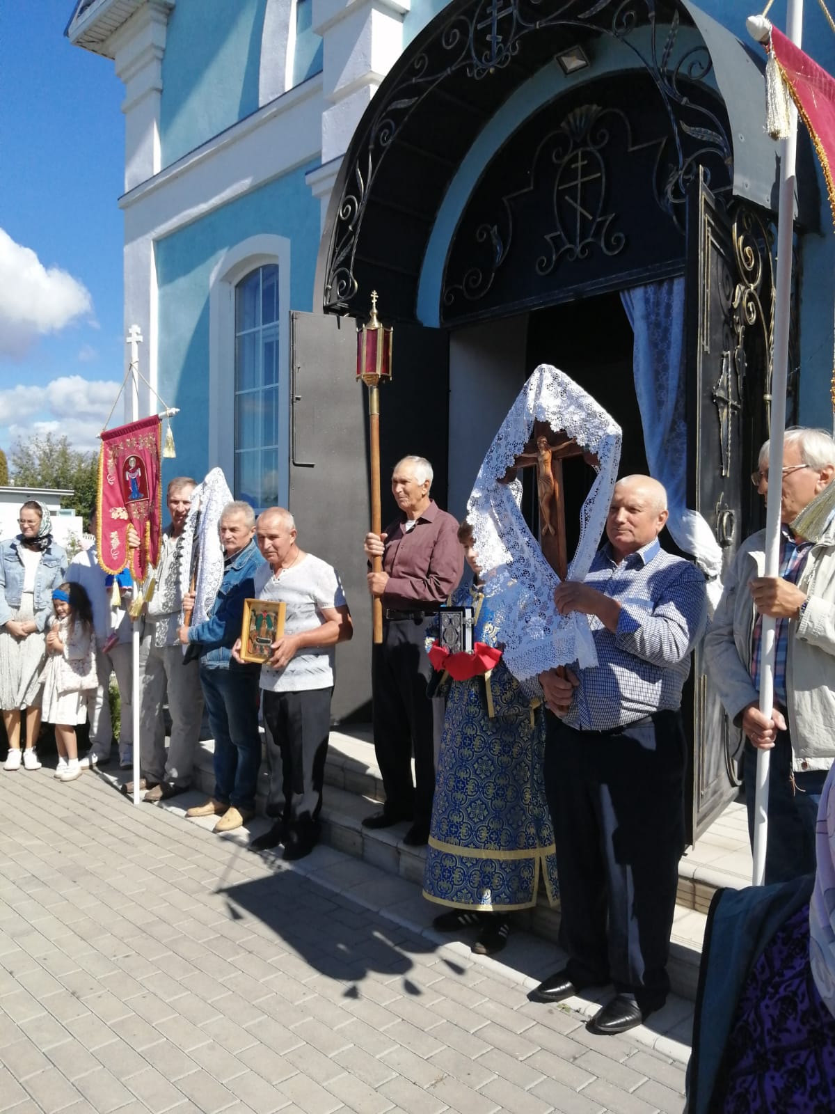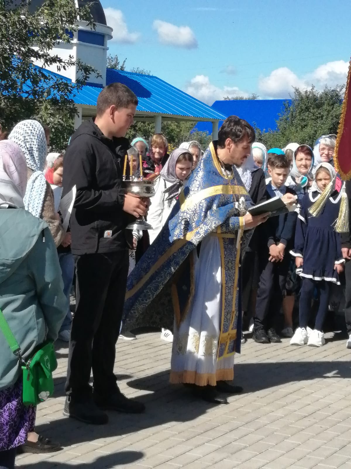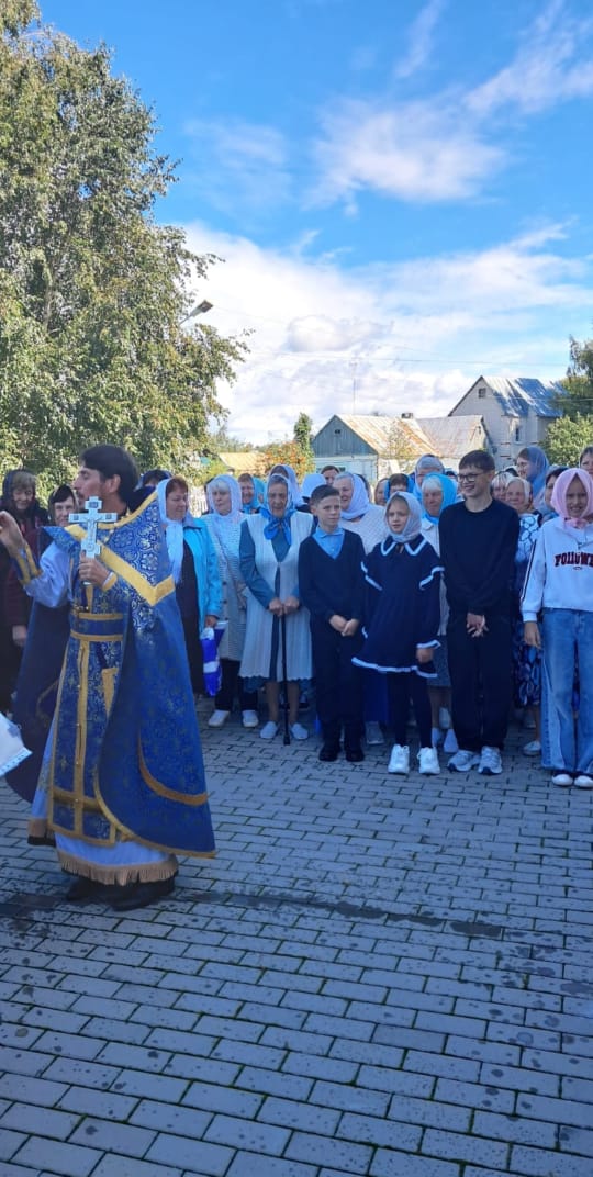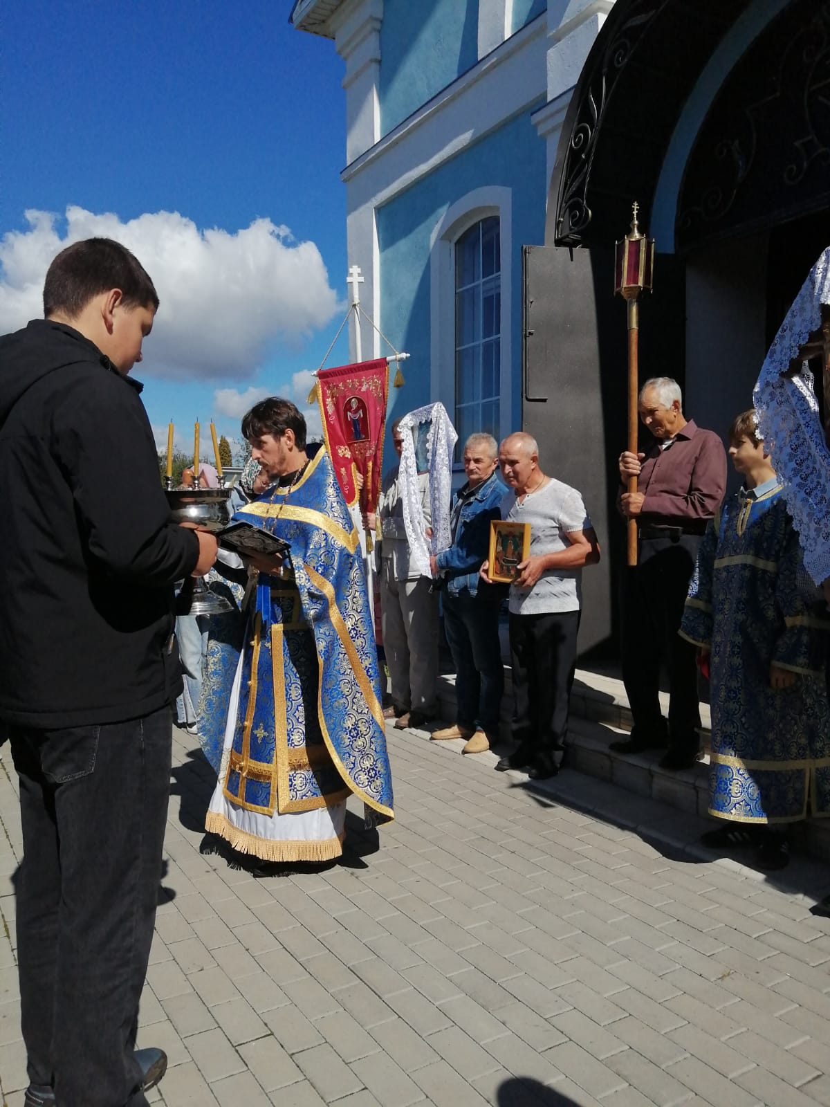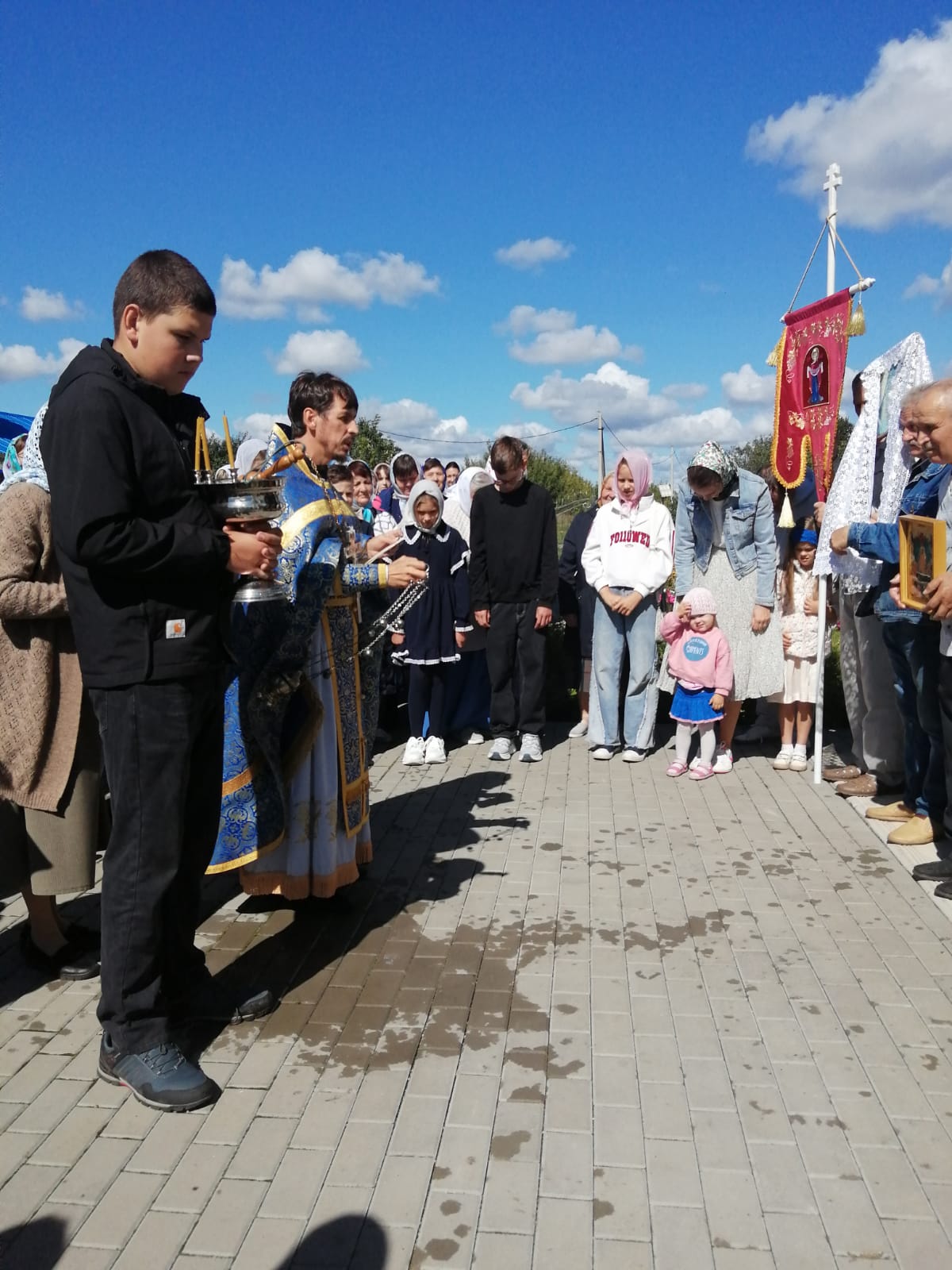 По окончании Божественной Литургии был совершен праздничный Крестный ход вокруг храма с поминовением живых и усопших и молебствием об учении отроков.