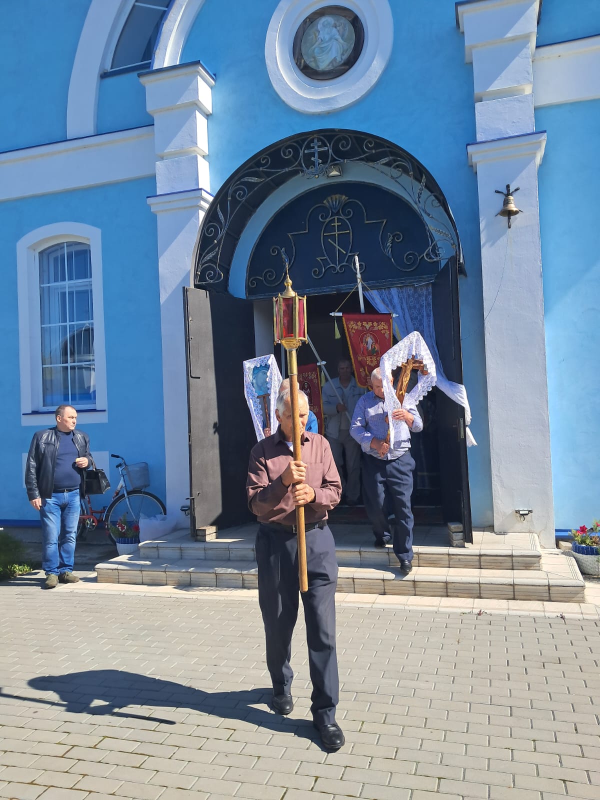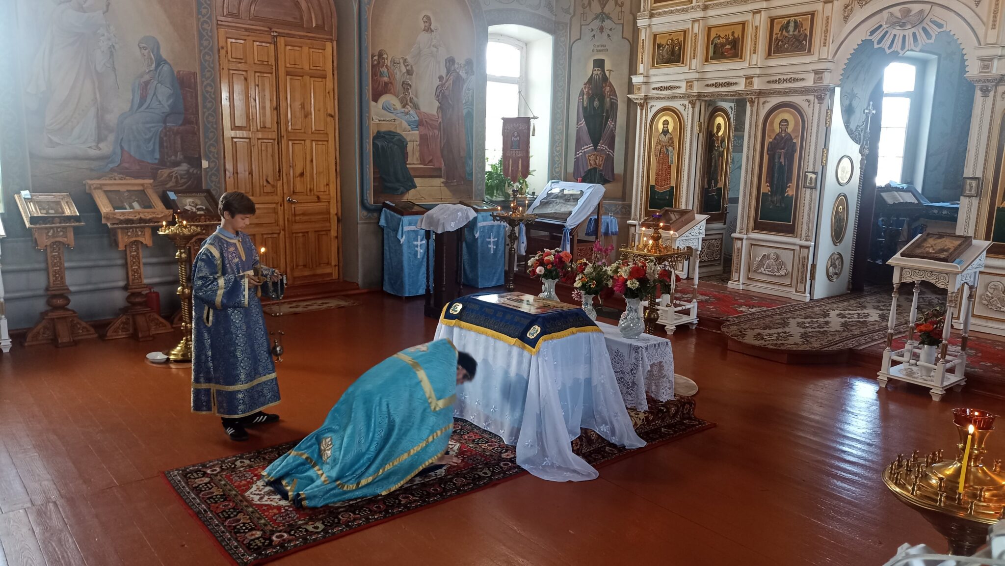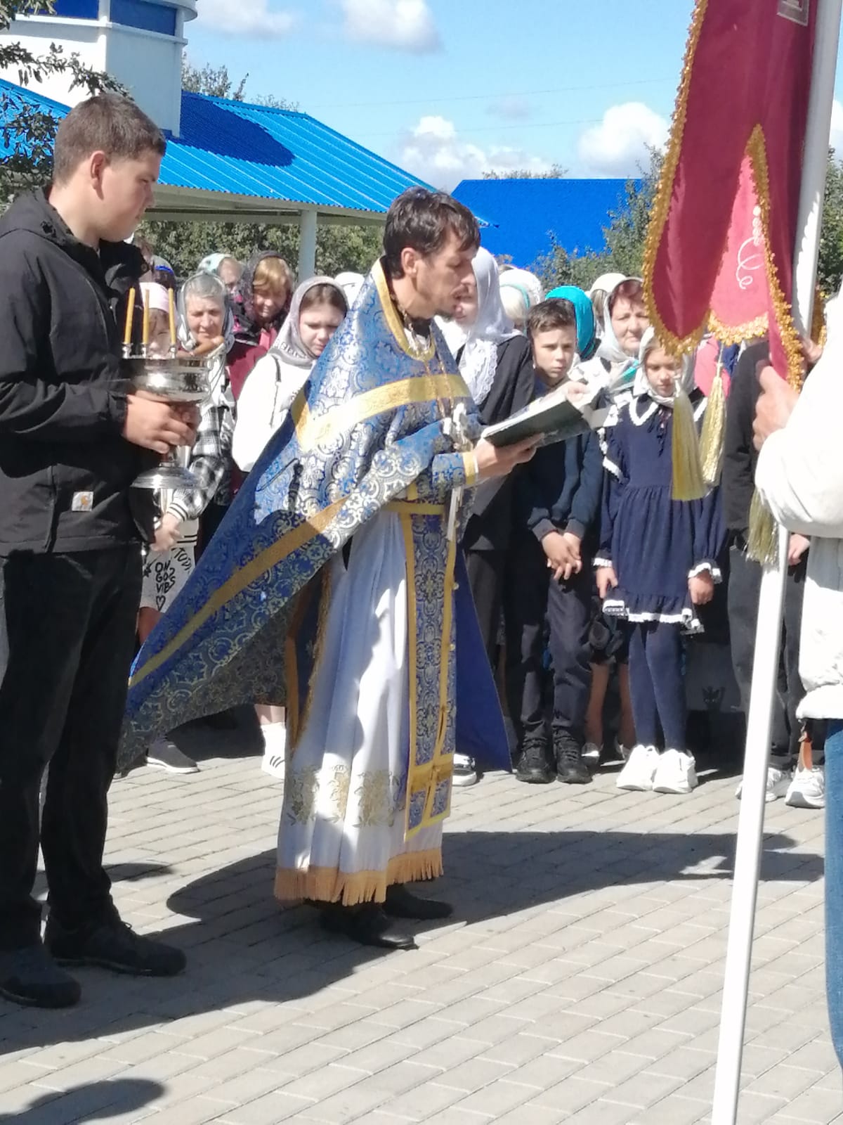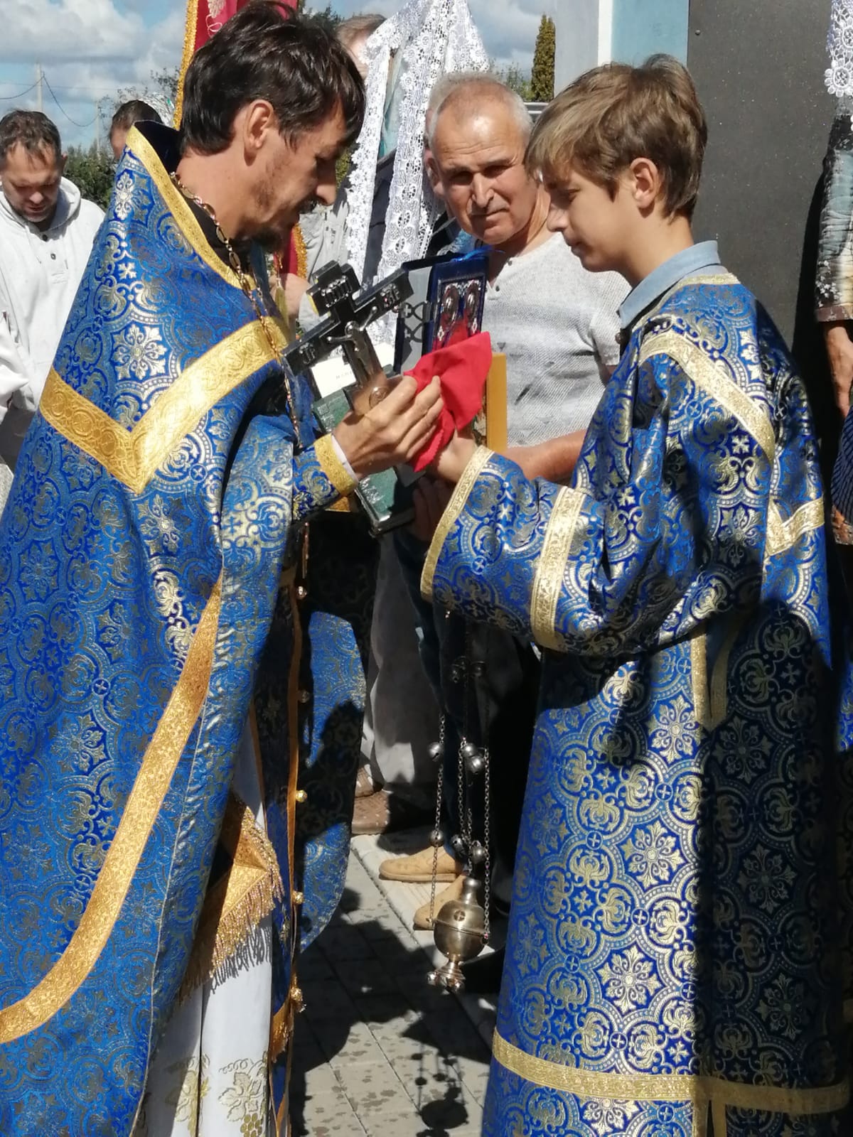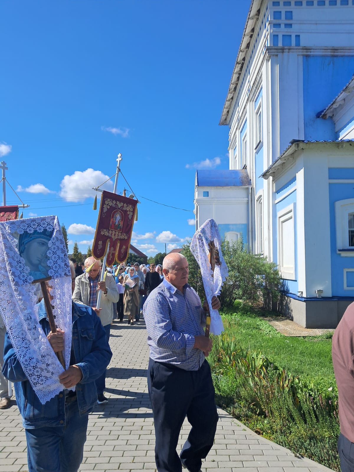 По окончании Божественной Литургии был совершен праздничный Крестный ход вокруг храма с поминовением живых и усопших и молебствием об учении отроков.