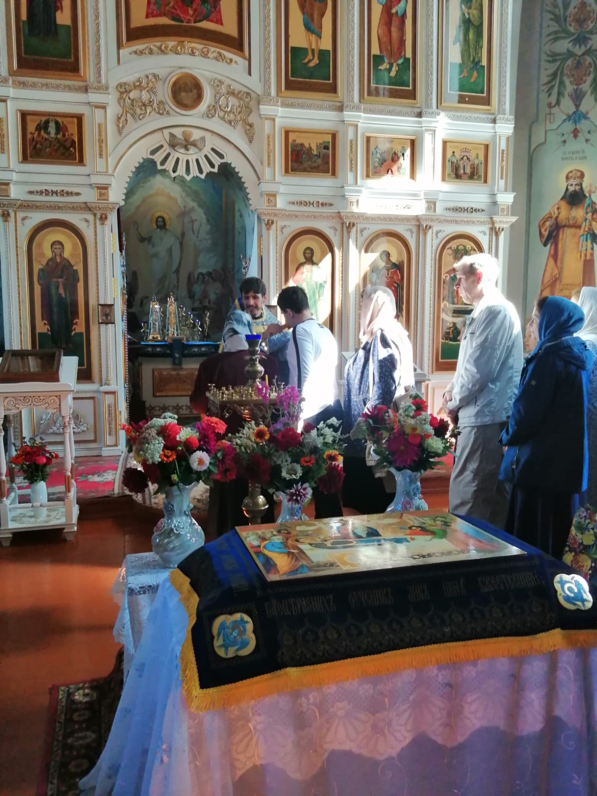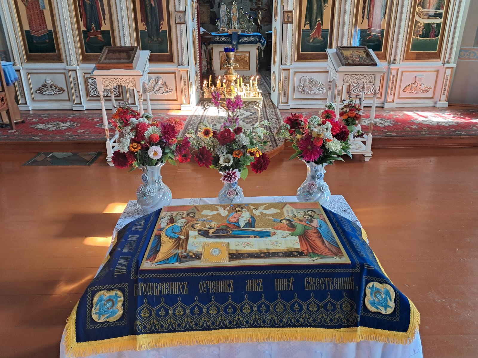 Престольный праздник 28 августа начался с радостного колокольного звона. Множество прихожан потянулись в храм почтить Святое Успение Матери Божией.