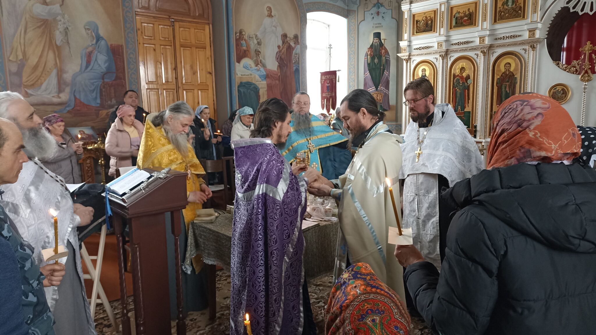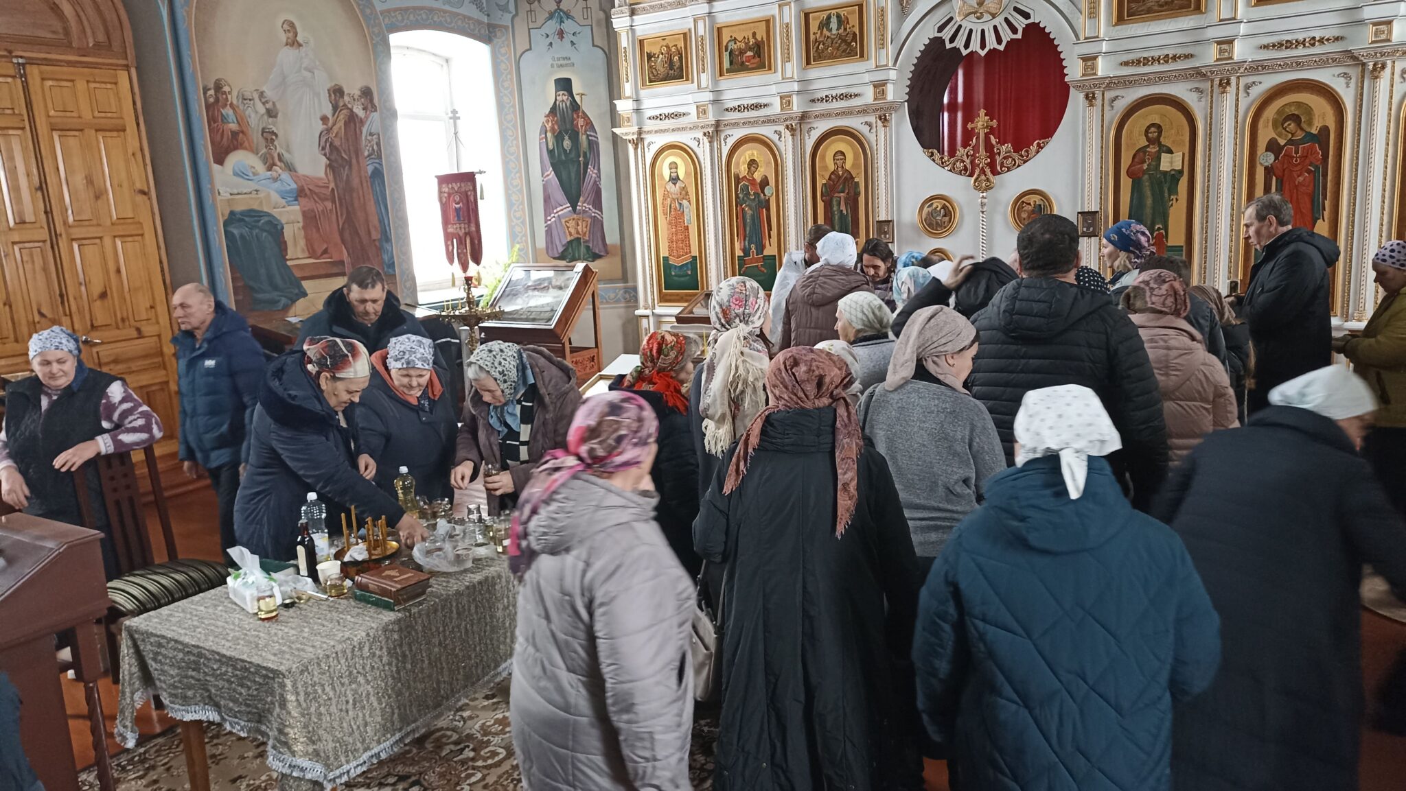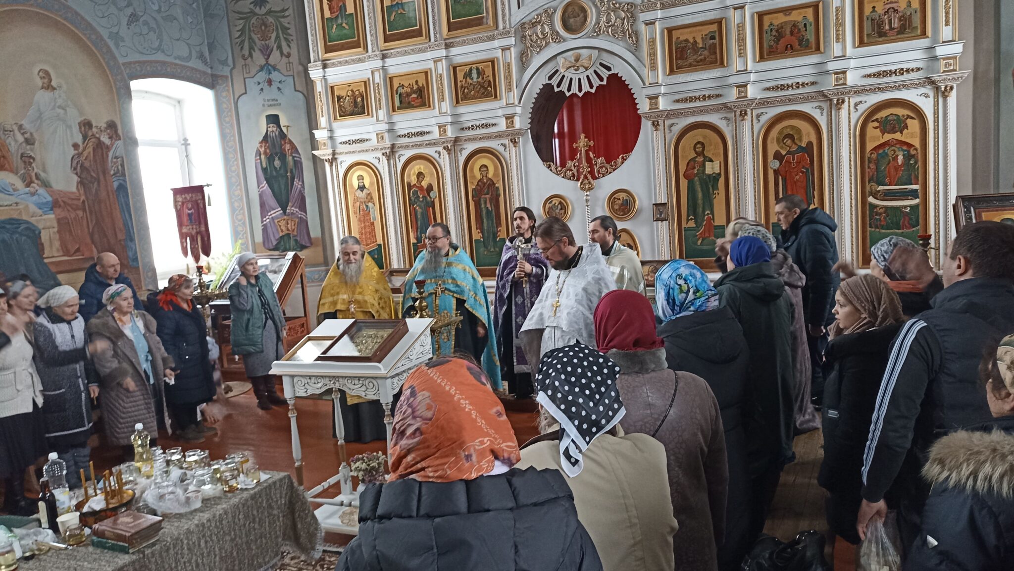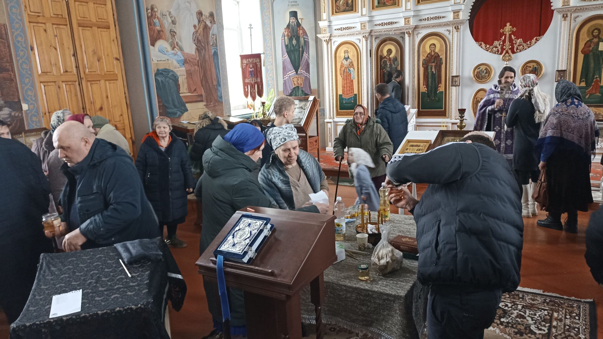 Сегодня 6 священников Добровского района совершили соборное служение в нашем храме. На Таинство Елеосвящения (Соборования) собралось множество страждущих верующих. Соборование – это Таинство, в котором при помазании тела елеем на больного призывается благодать Божия, которая исцеляет немощи духовные и телесные.Также в Таинстве Соборования человек получает прощение грехов.