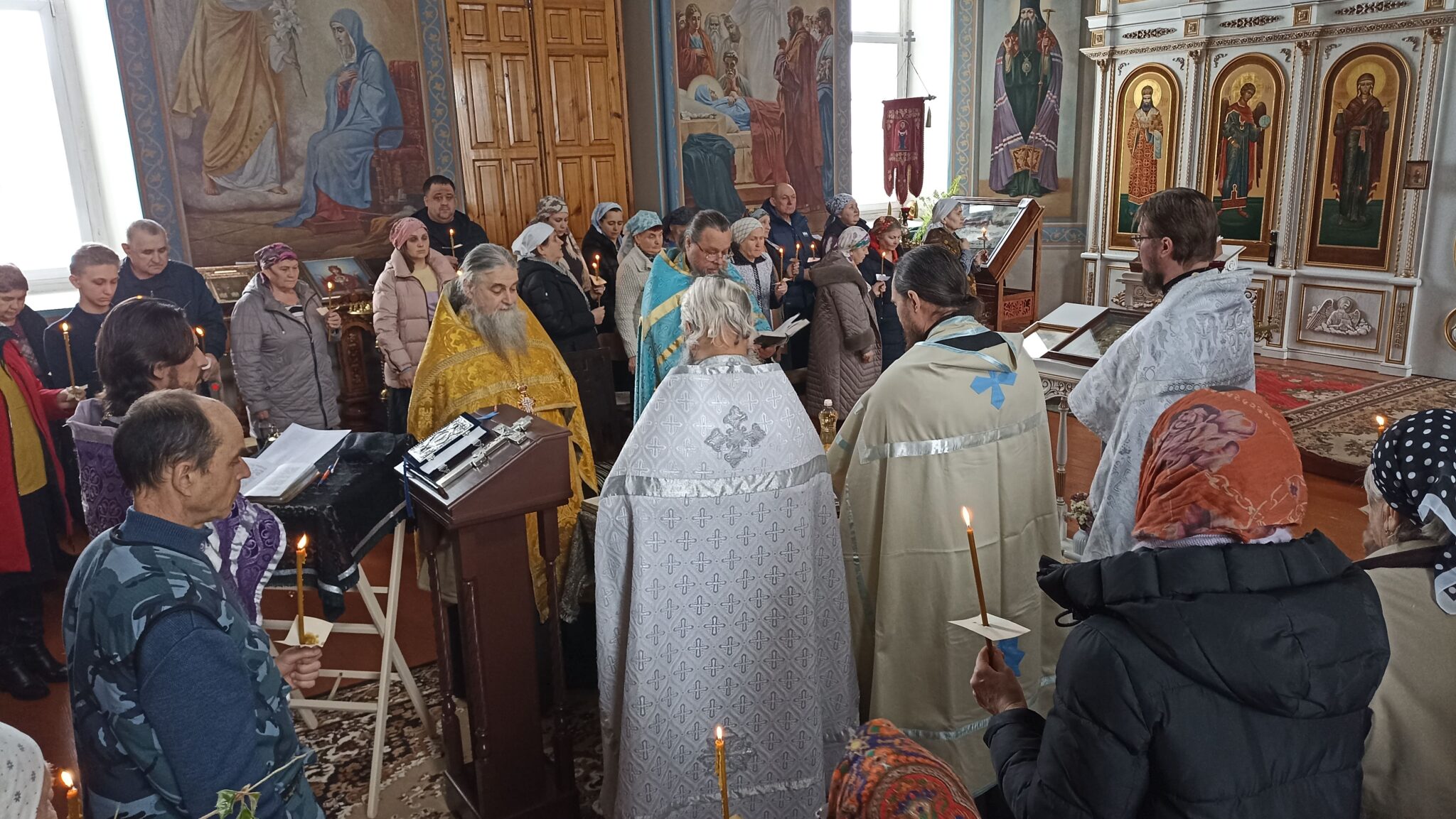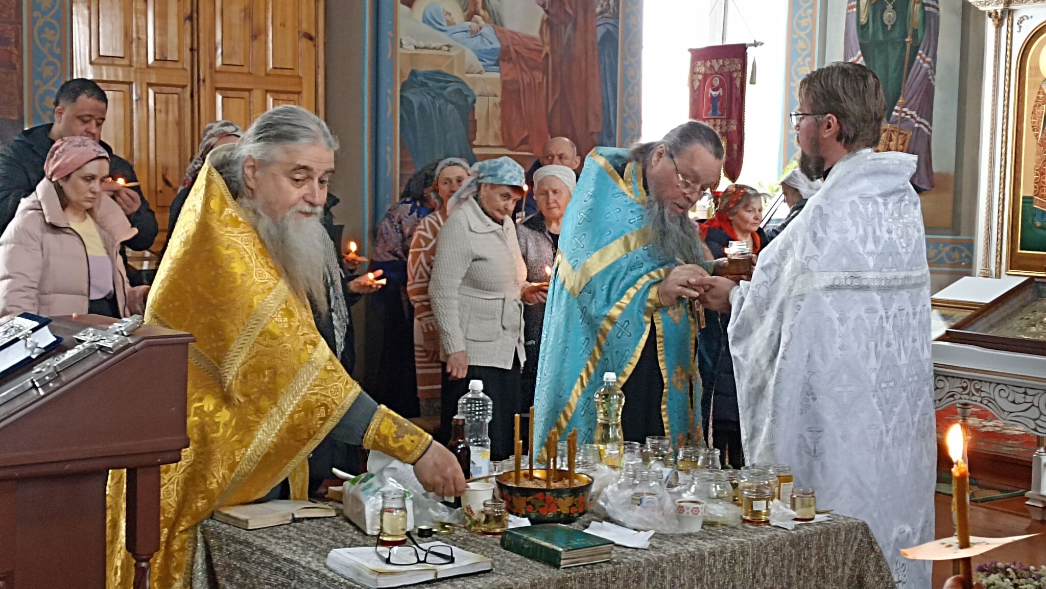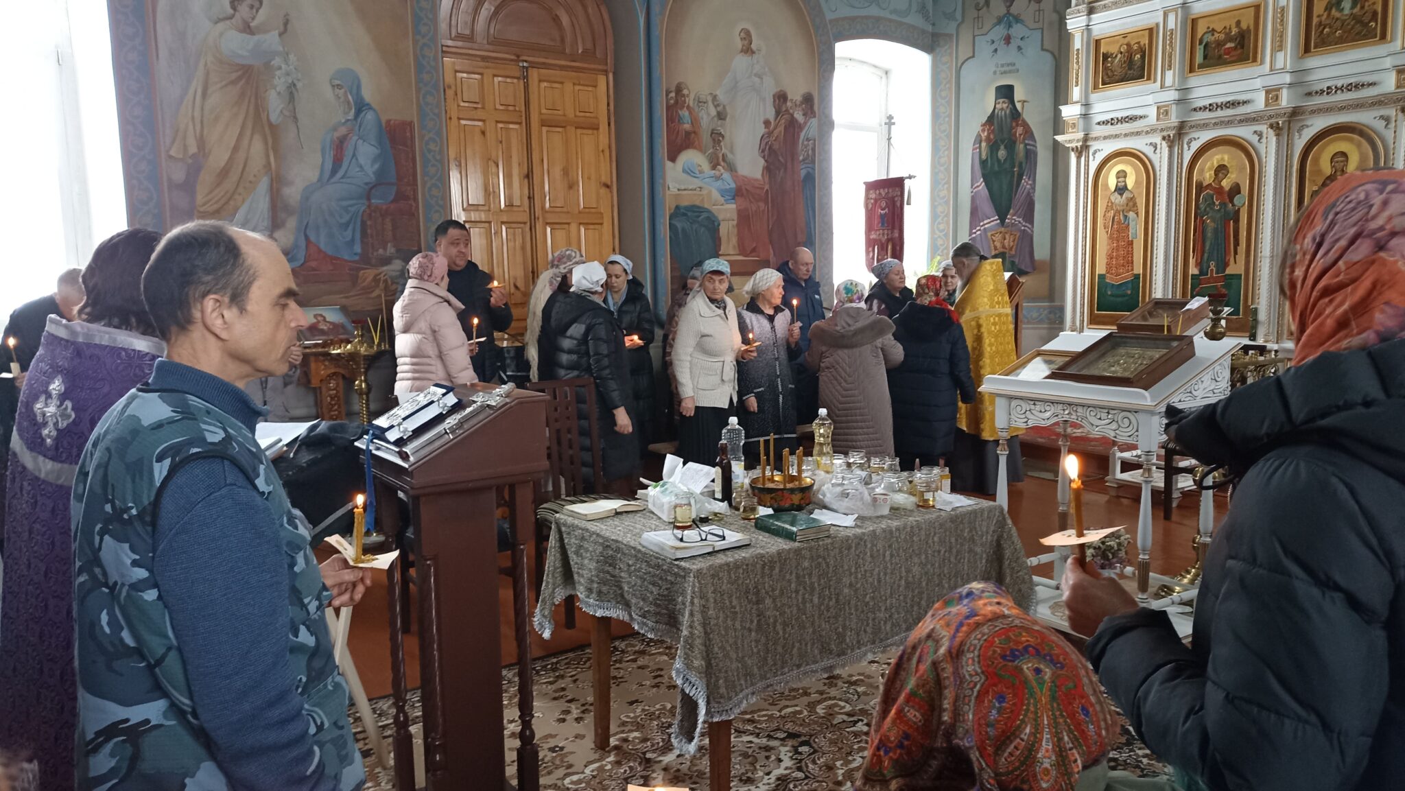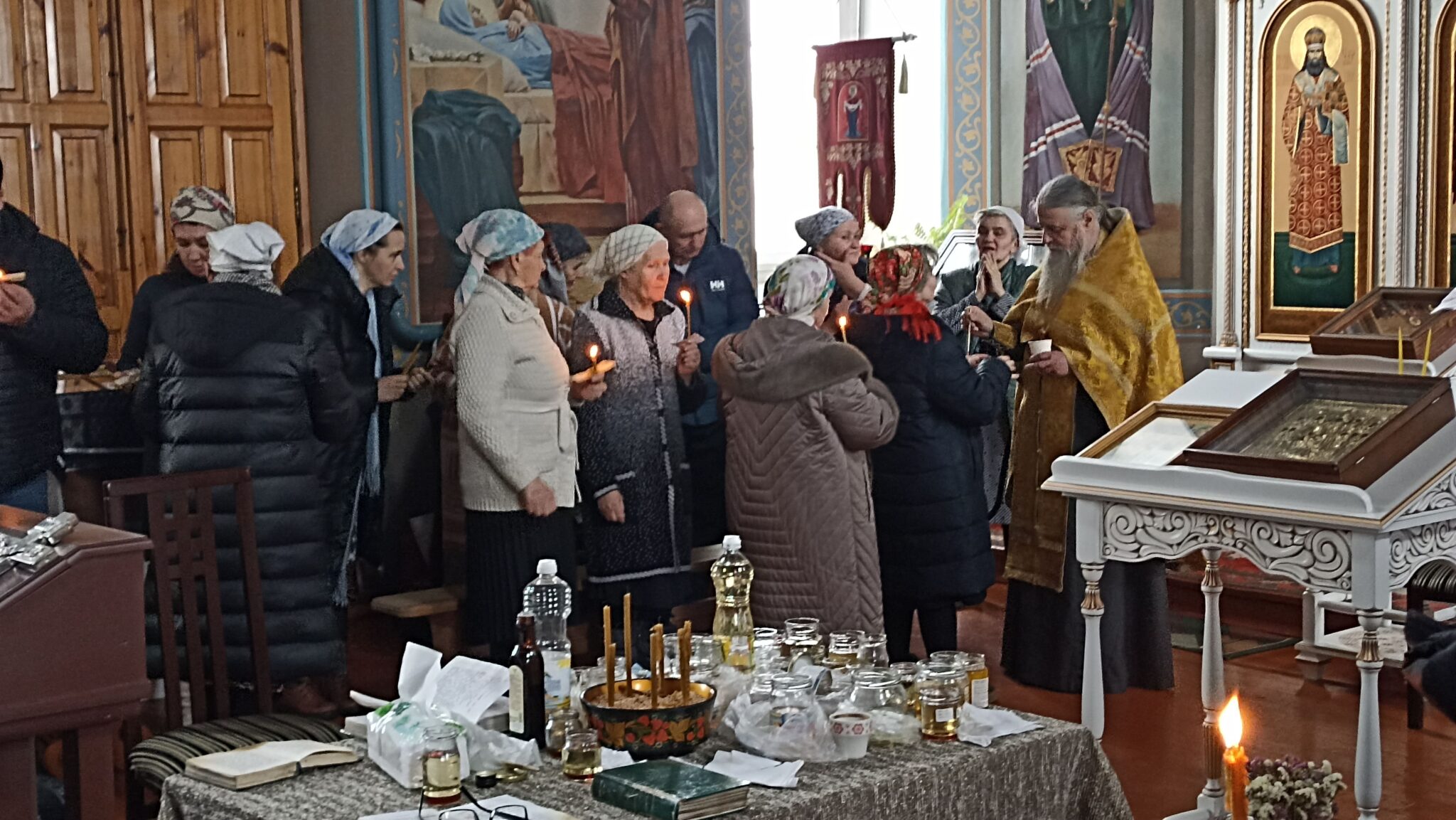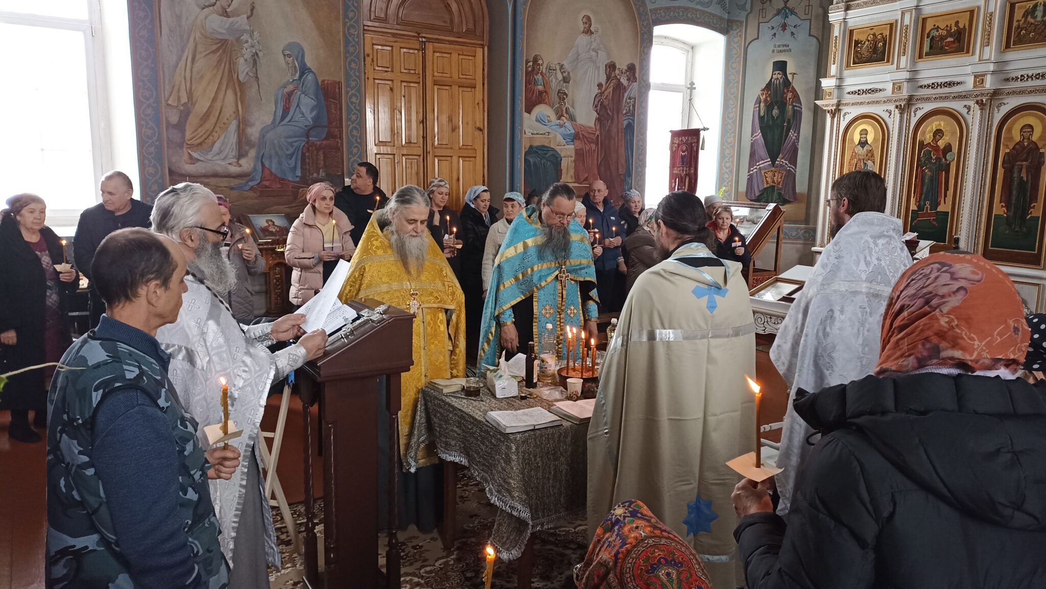 Сегодня 6 священников Добровского района совершили соборное служение в нашем храме. На Таинство Елеосвящения (Соборования) собралось множество страждущих верующих. Соборование – это Таинство, в котором при помазании тела елеем на больного призывается благодать Божия, которая исцеляет немощи духовные и телесные.Также в Таинстве Соборования человек получает прощение грехов.