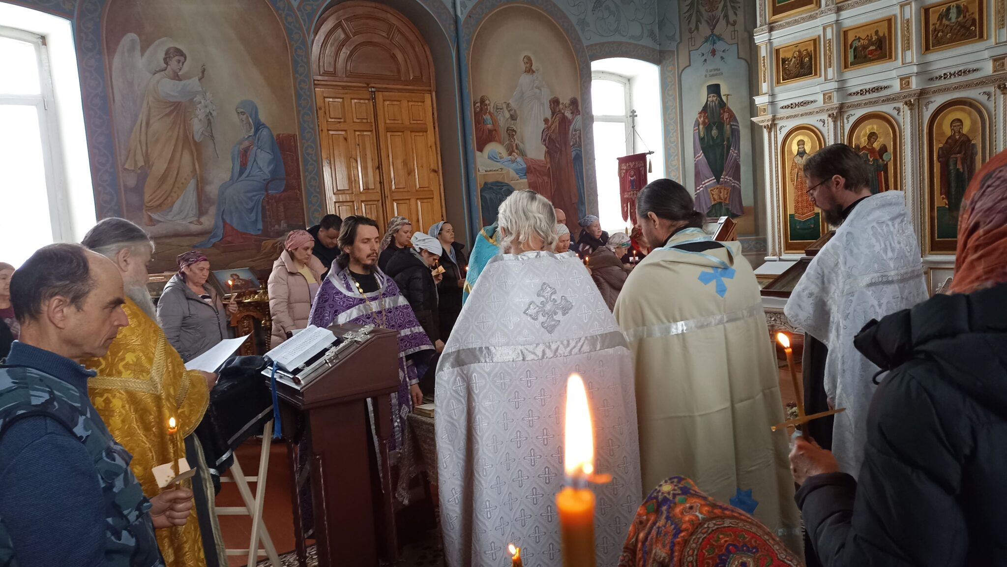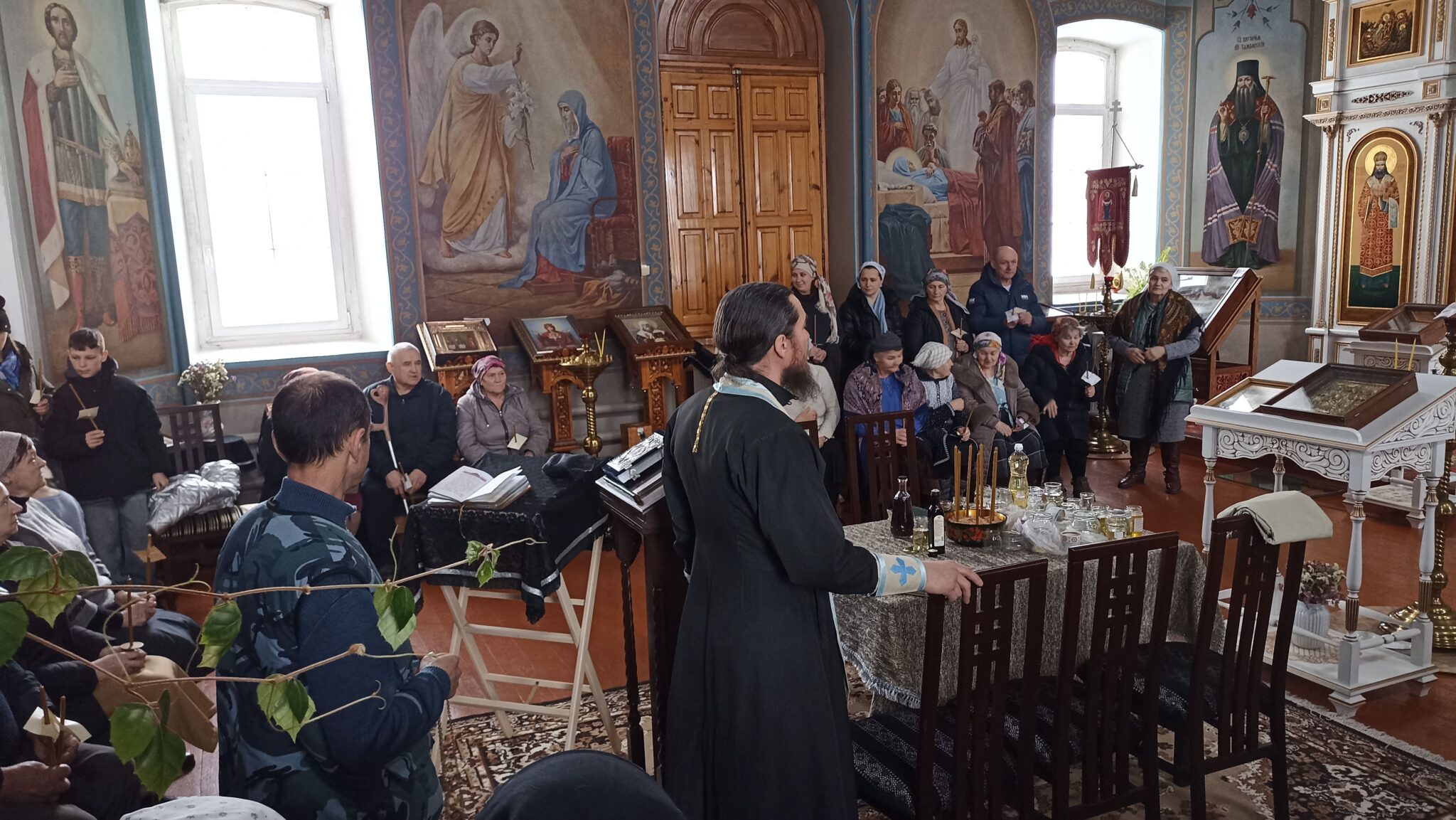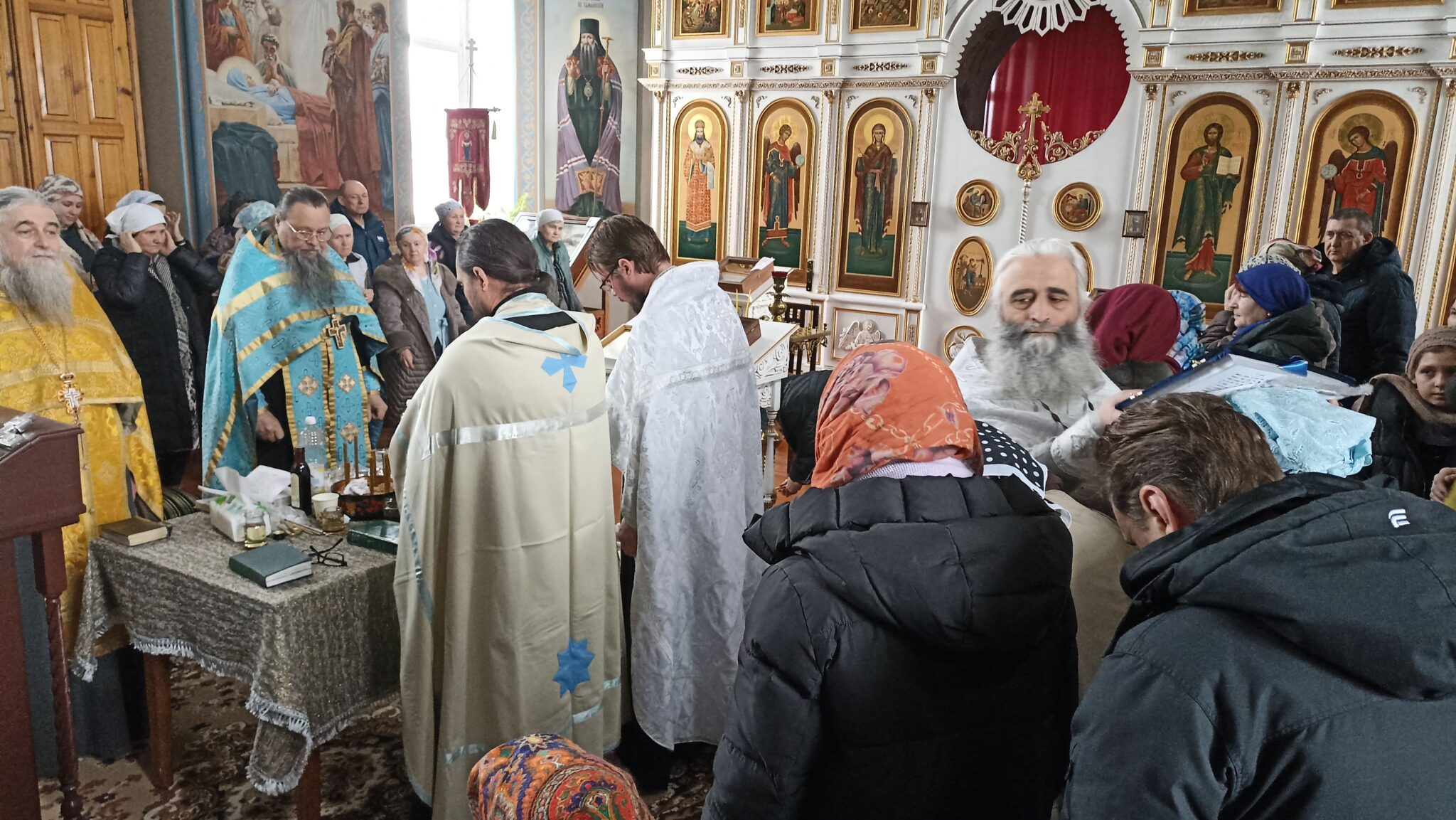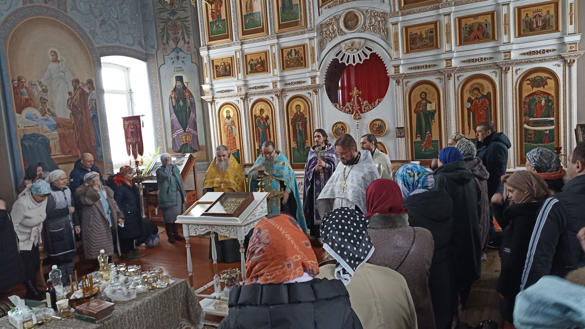 Сегодня 6 священников Добровского района совершили соборное служение в нашем храме. На Таинство Елеосвящения (Соборования) собралось множество страждущих верующих. Соборование – это Таинство, в котором при помазании тела елеем на больного призывается благодать Божия, которая исцеляет немощи духовные и телесные.Также в Таинстве Соборования человек получает прощение грехов.