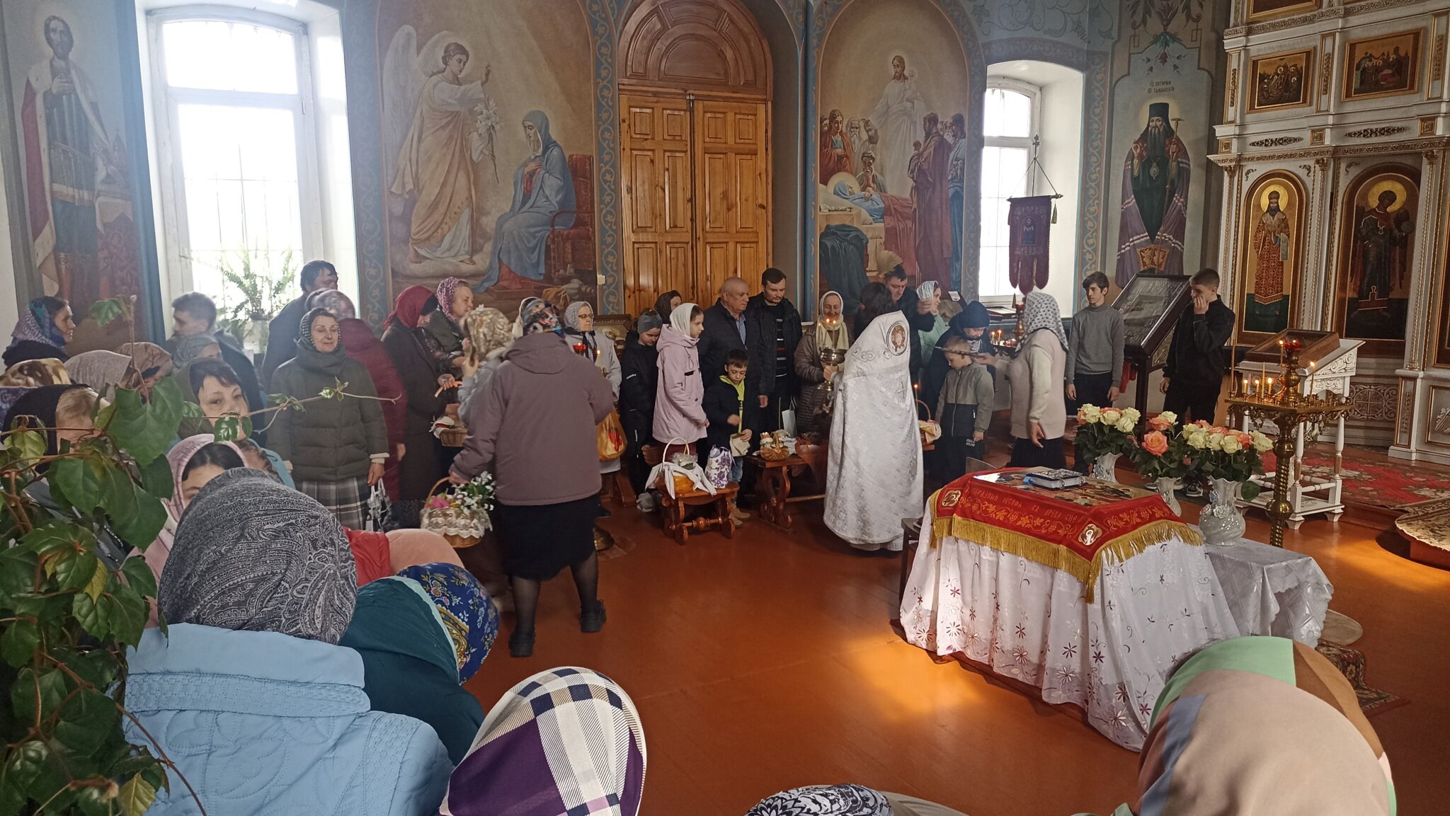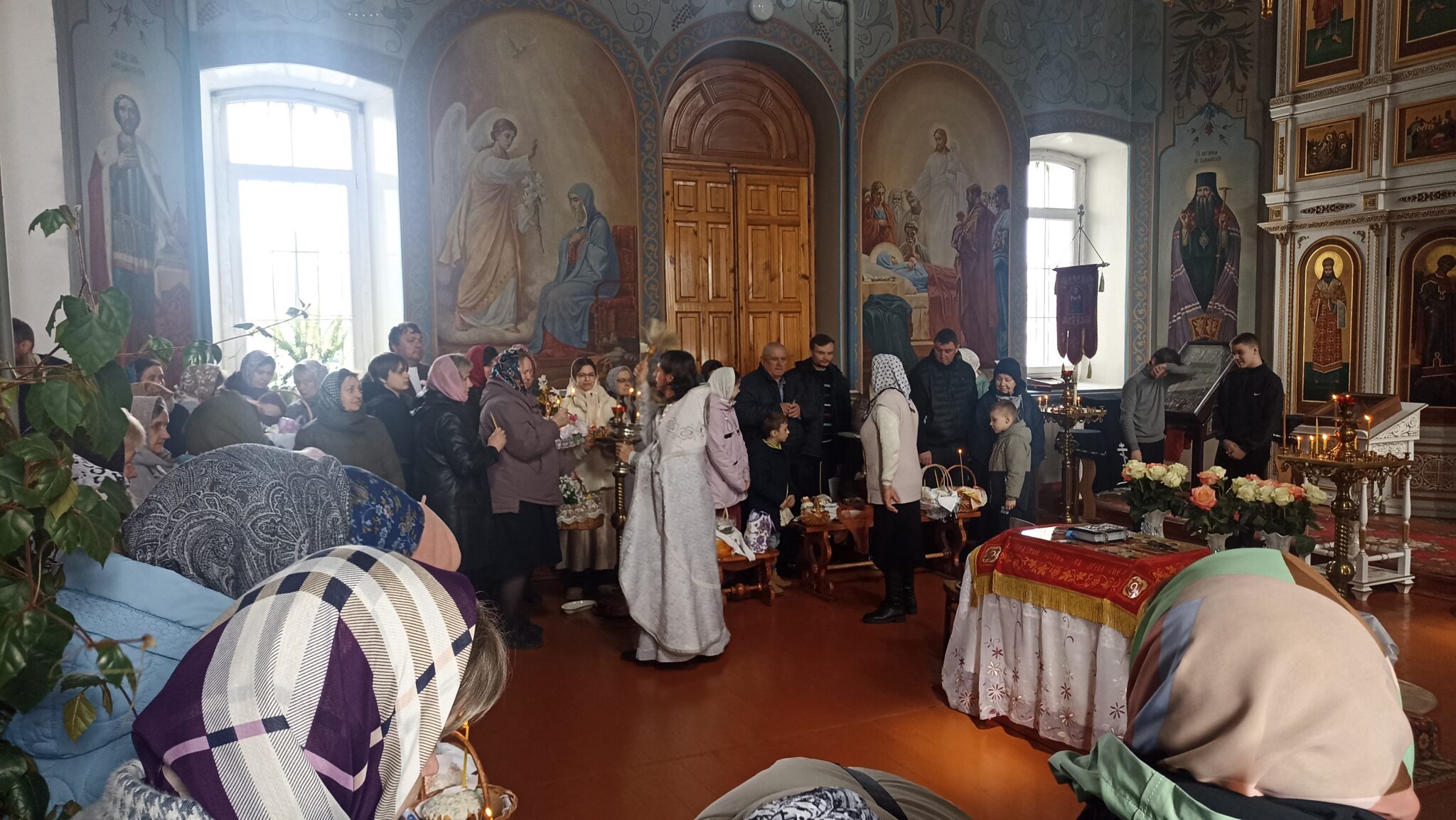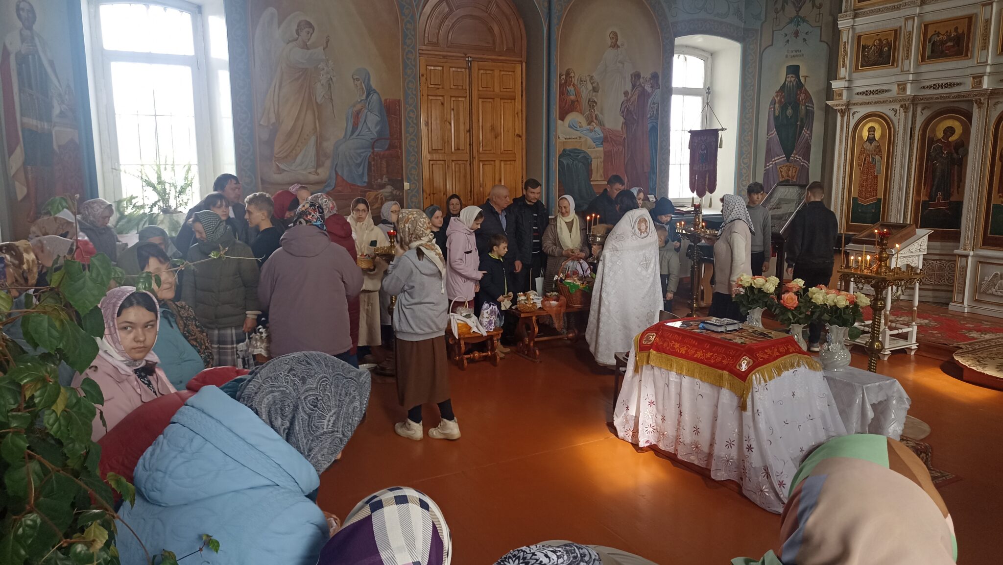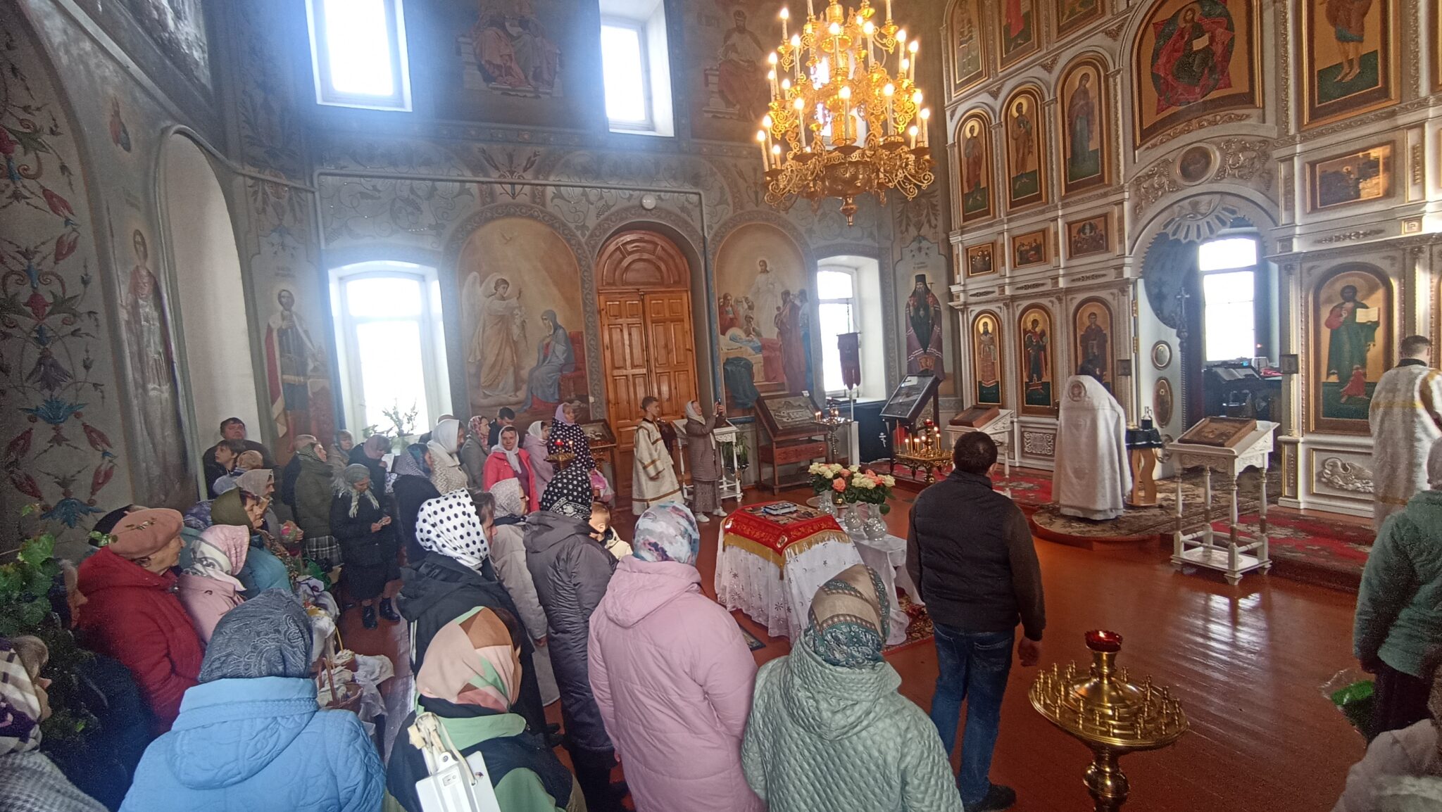 По окончании Божественной литургии настоятель отец Андрей совершил традиционное освящение пасхальной трапезы. Ряды румяных куличей и ярких яиц под сводами храма напомнили нам: пост позади, а впереди — ослепительный свет Пасхи, который уже совсем скоро озарит мир, как Благодатный огонь в Иерусалиме.
