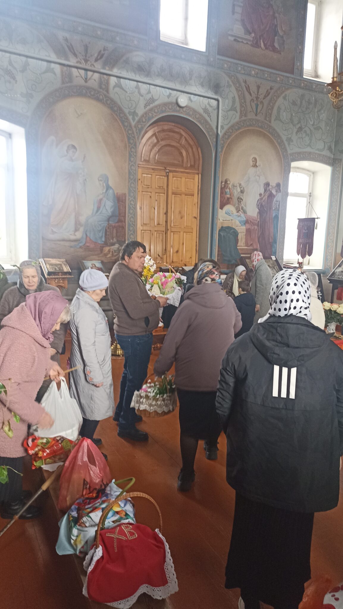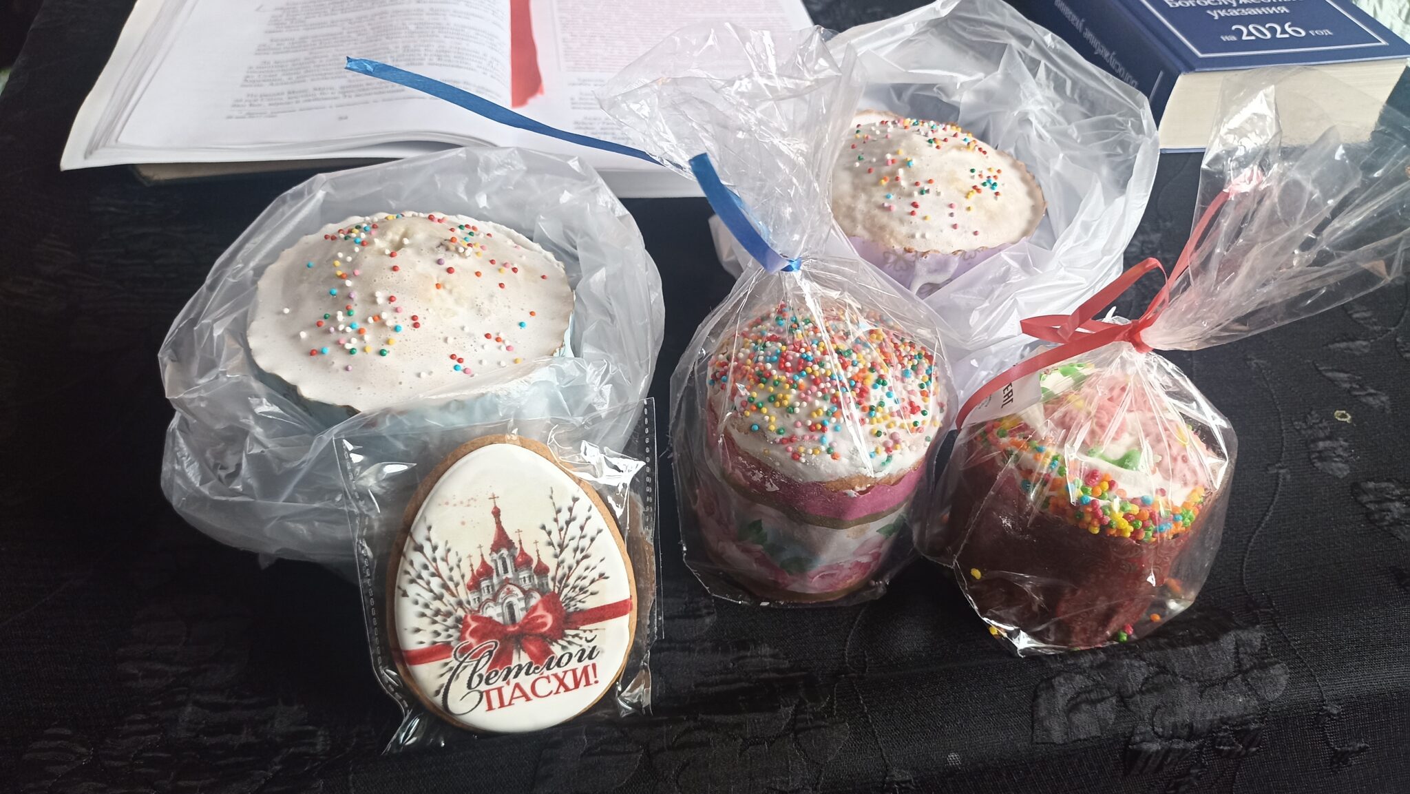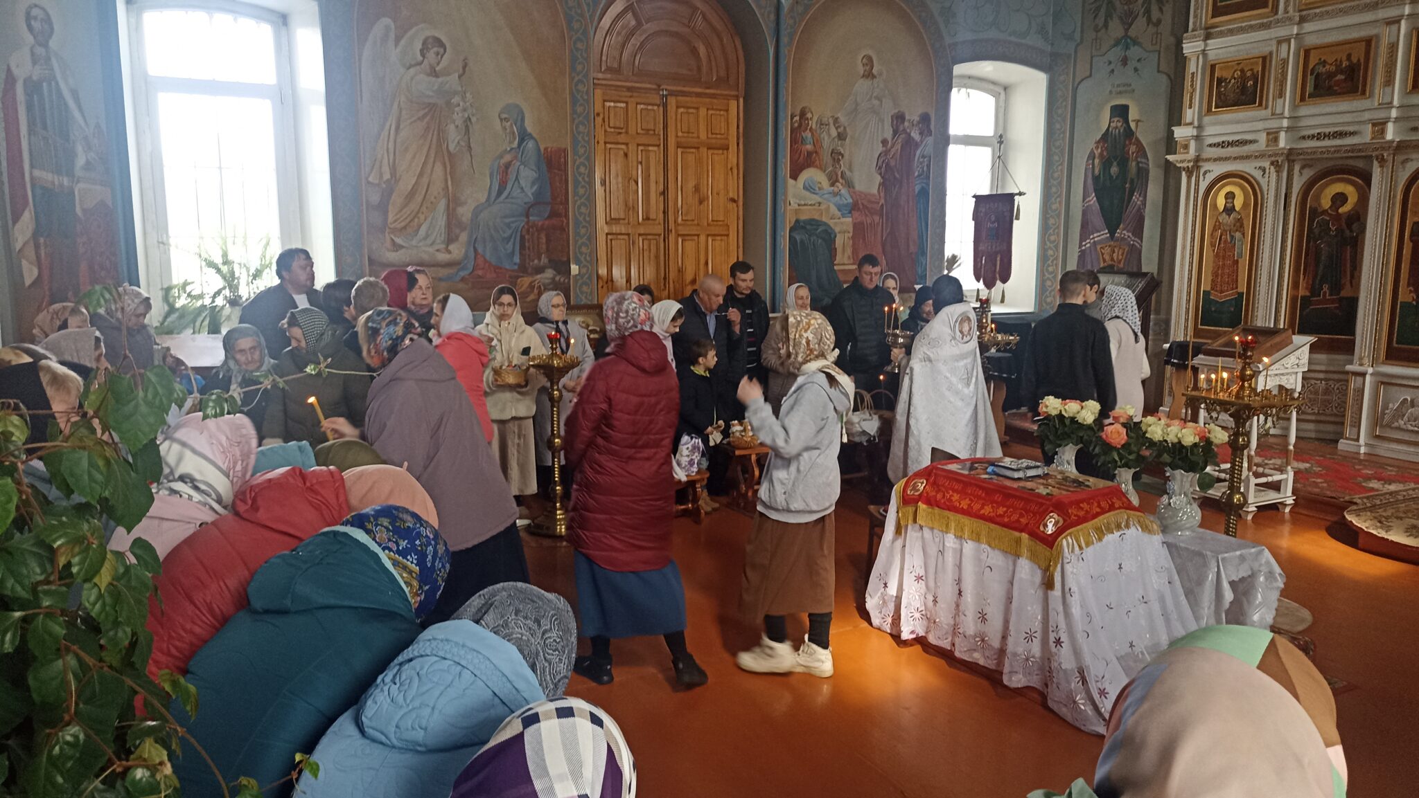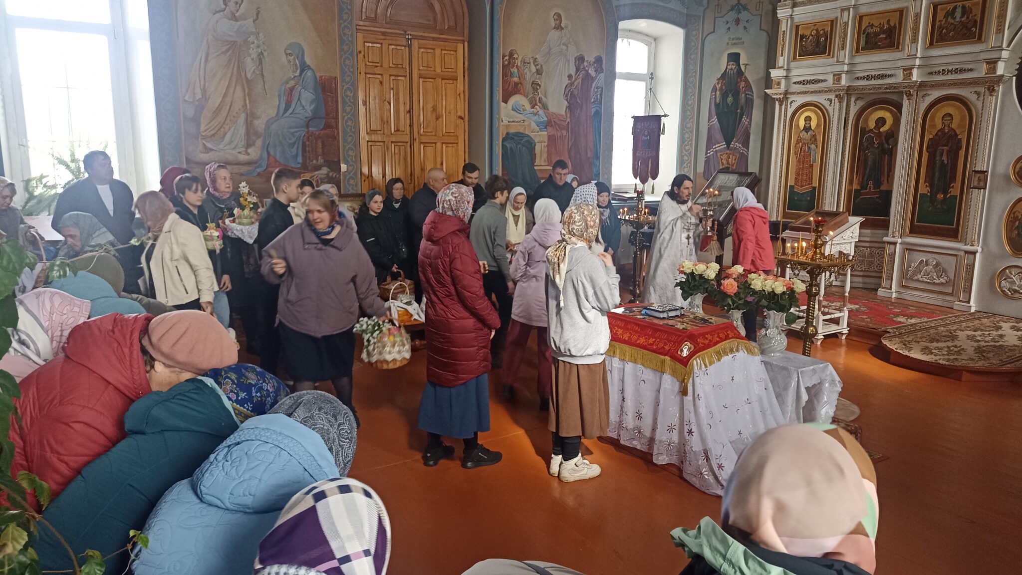 По окончании Божественной литургии настоятель отец Андрей совершил традиционное освящение пасхальной трапезы. Ряды румяных куличей и ярких яиц под сводами храма напомнили нам: пост позади, а впереди — ослепительный свет Пасхи, который уже совсем скоро озарит мир, как Благодатный огонь в Иерусалиме.
