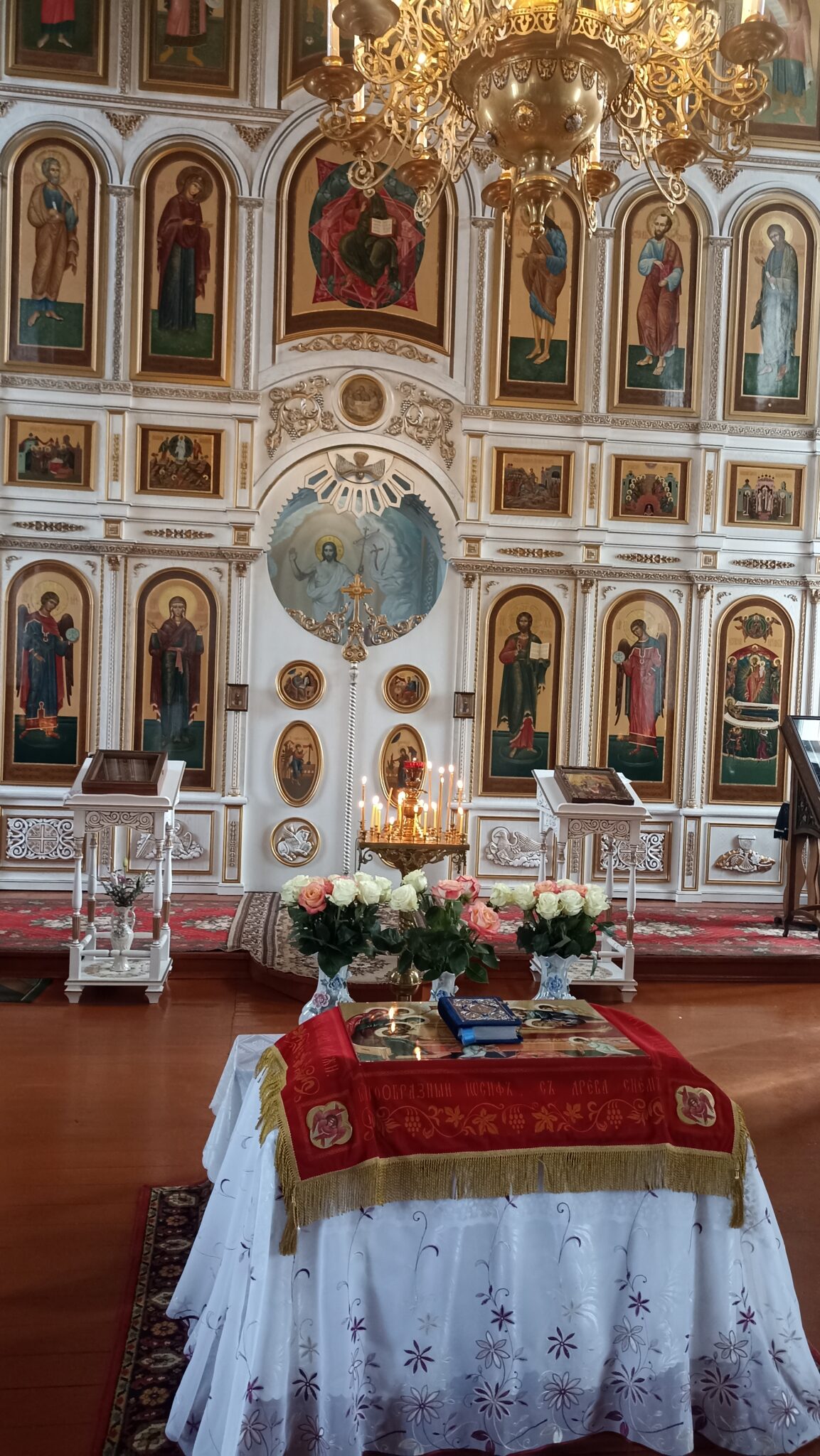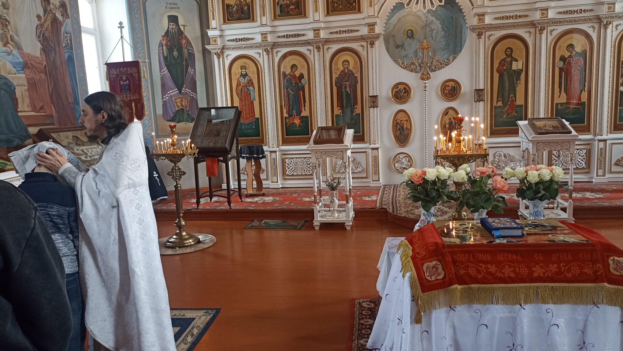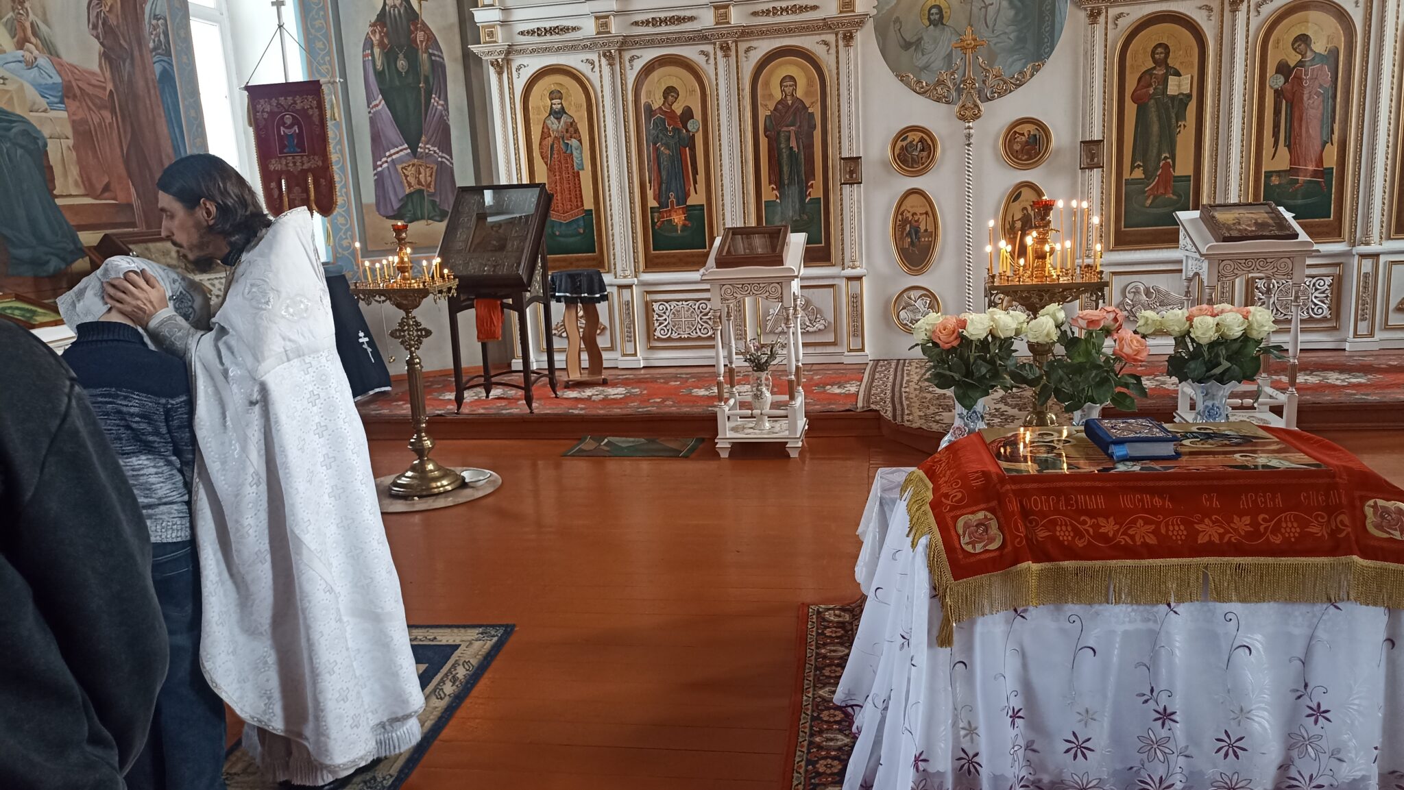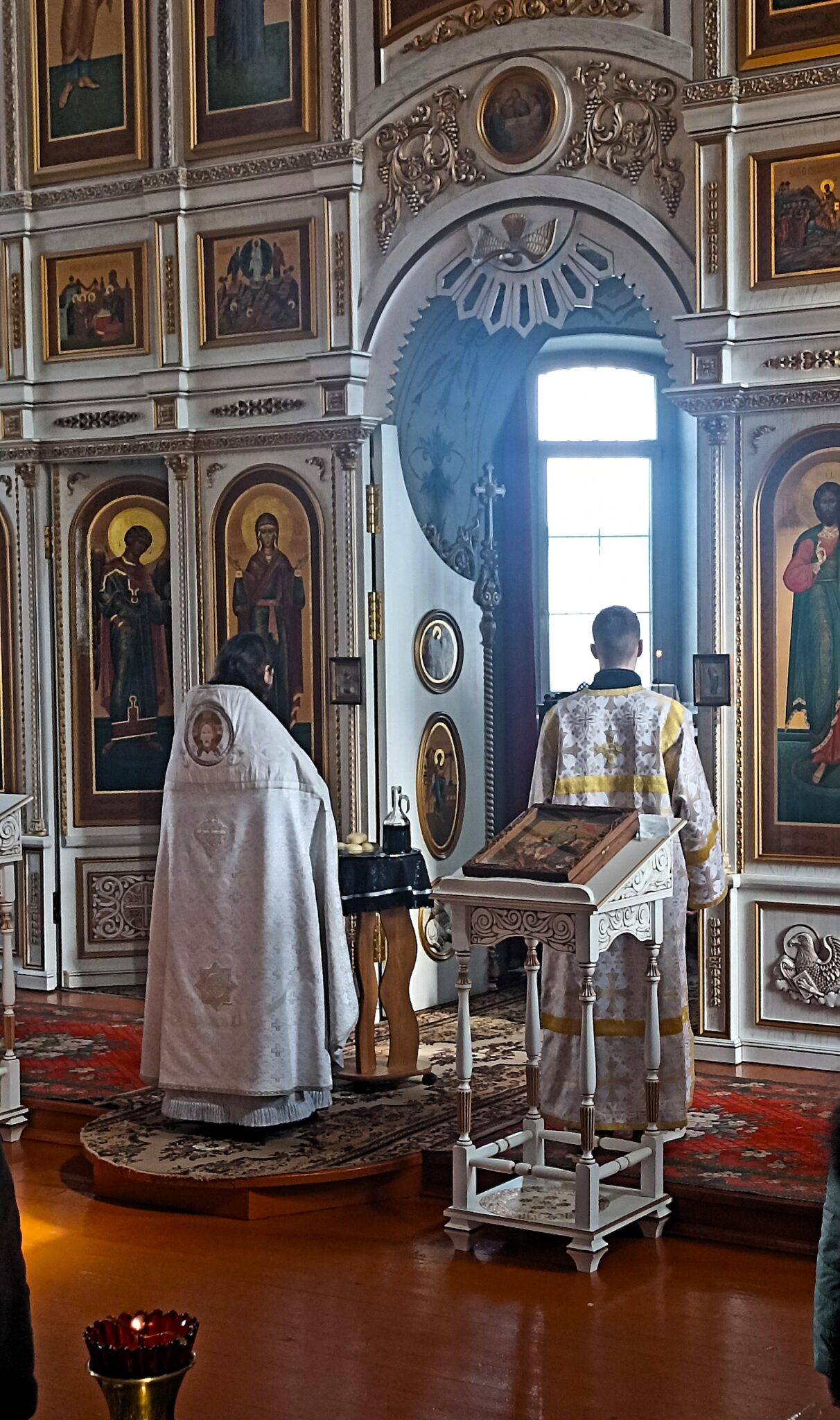 По окончании Божественной литургии настоятель отец Андрей совершил традиционное освящение пасхальной трапезы. Ряды румяных куличей и ярких яиц под сводами храма напомнили нам: пост позади, а впереди — ослепительный свет Пасхи, который уже совсем скоро озарит мир, как Благодатный огонь в Иерусалиме.