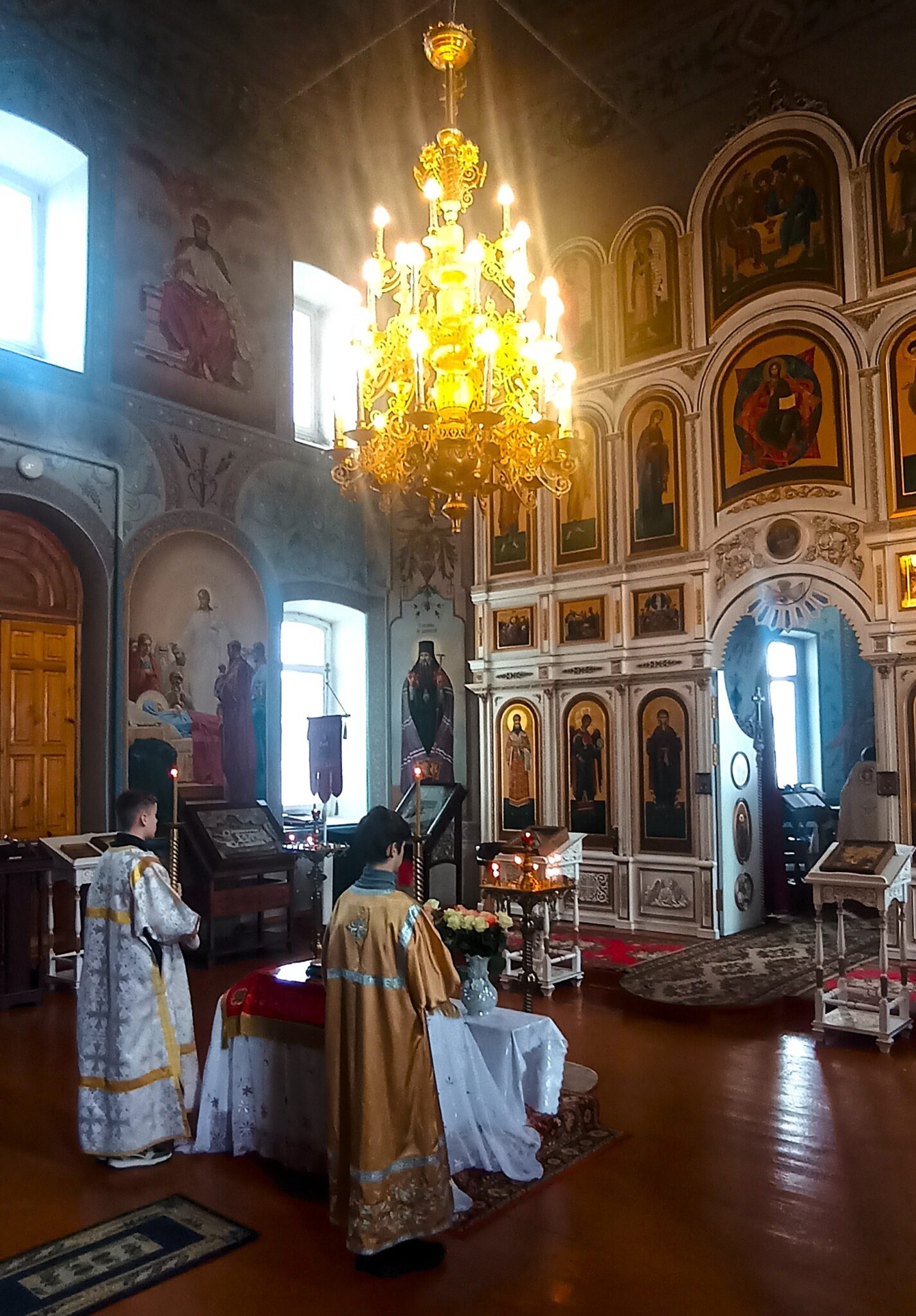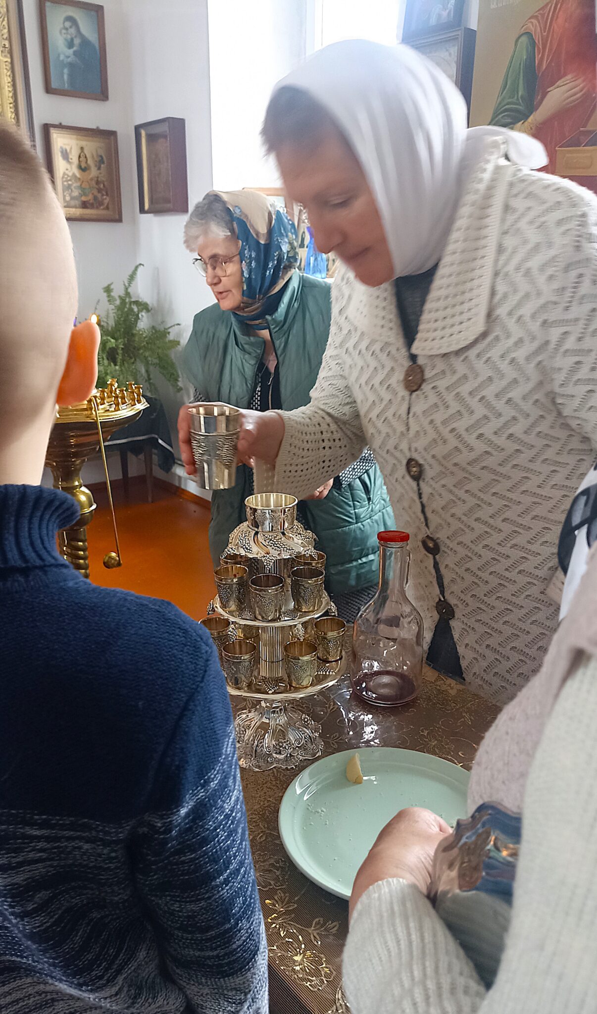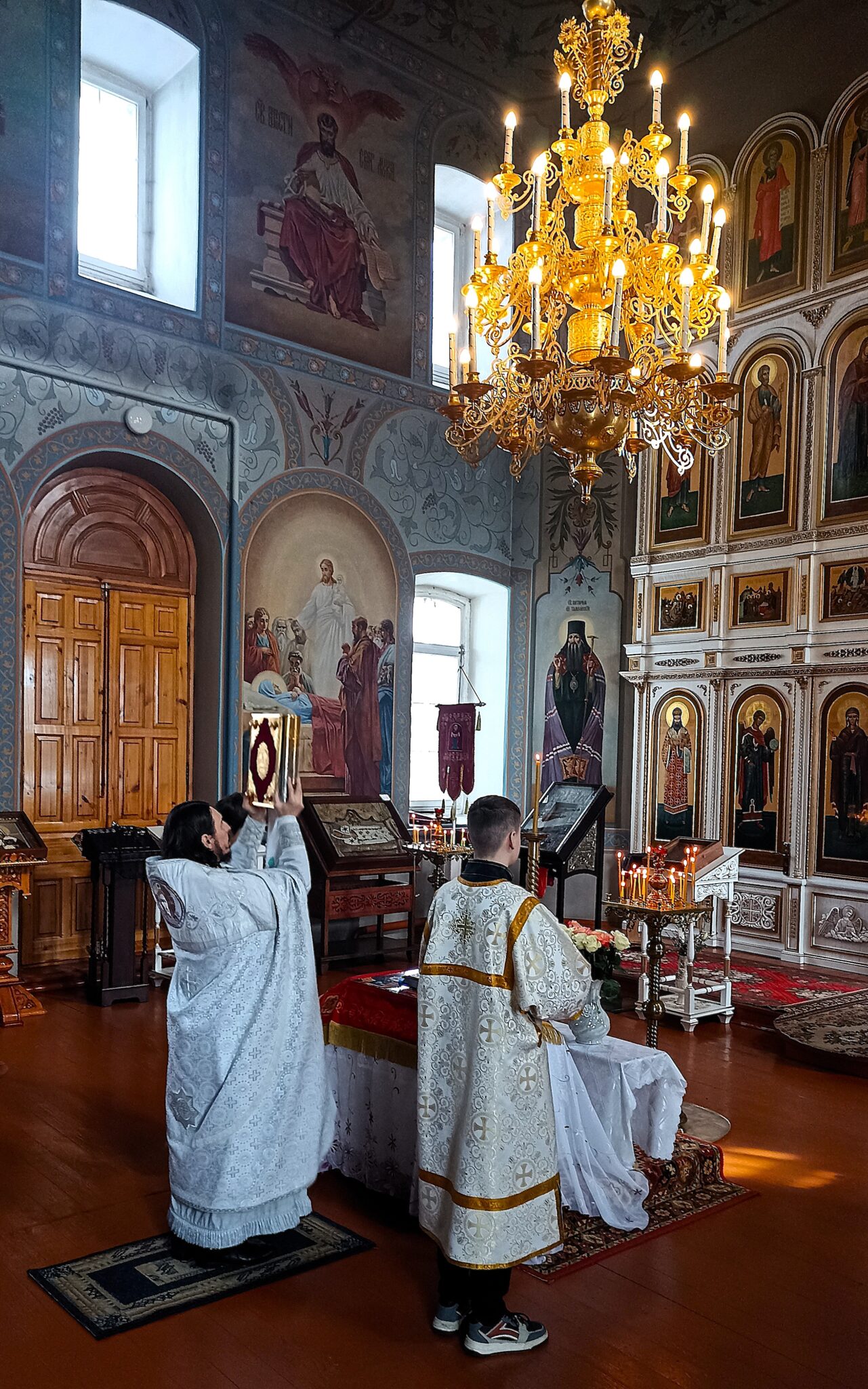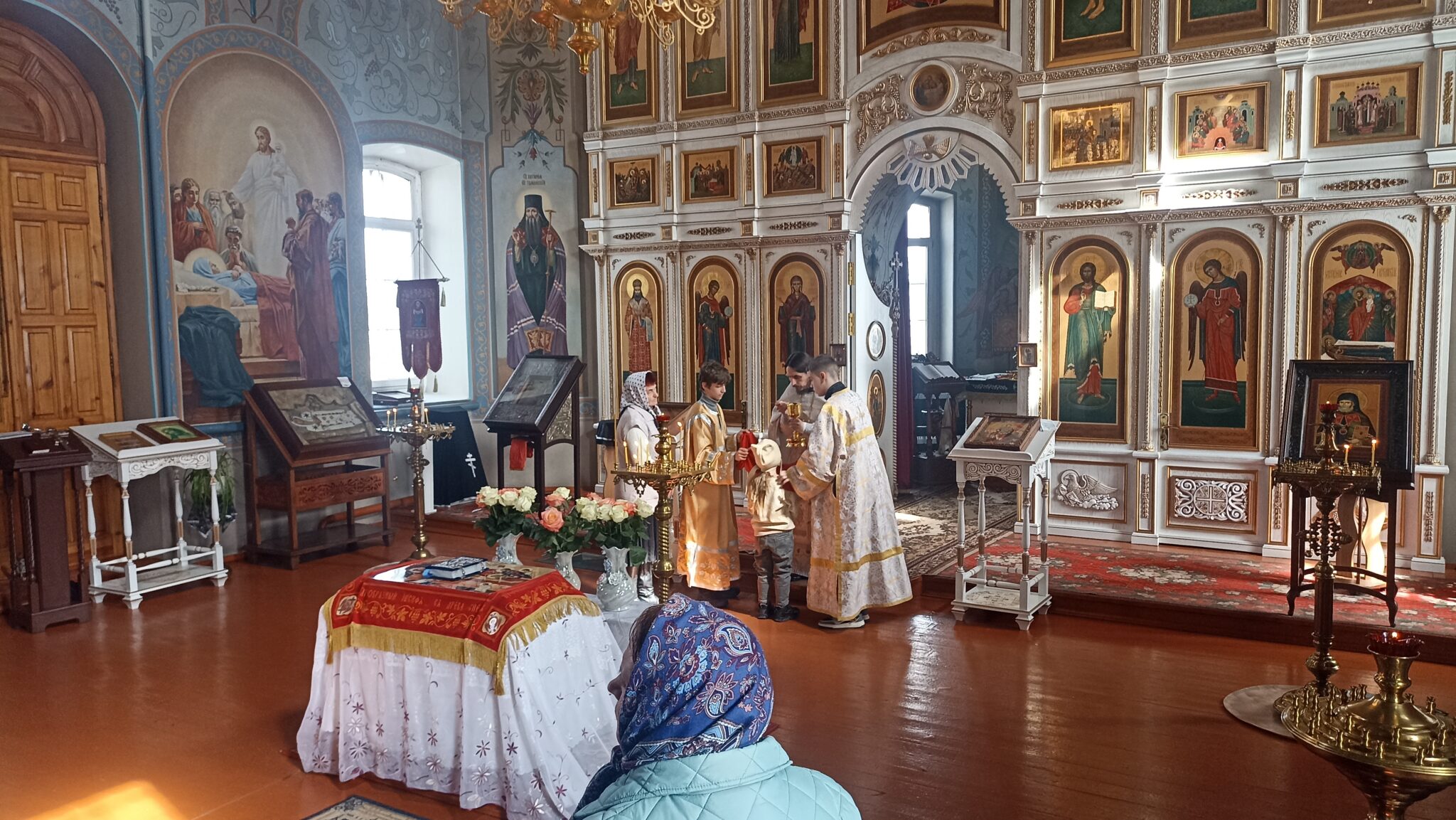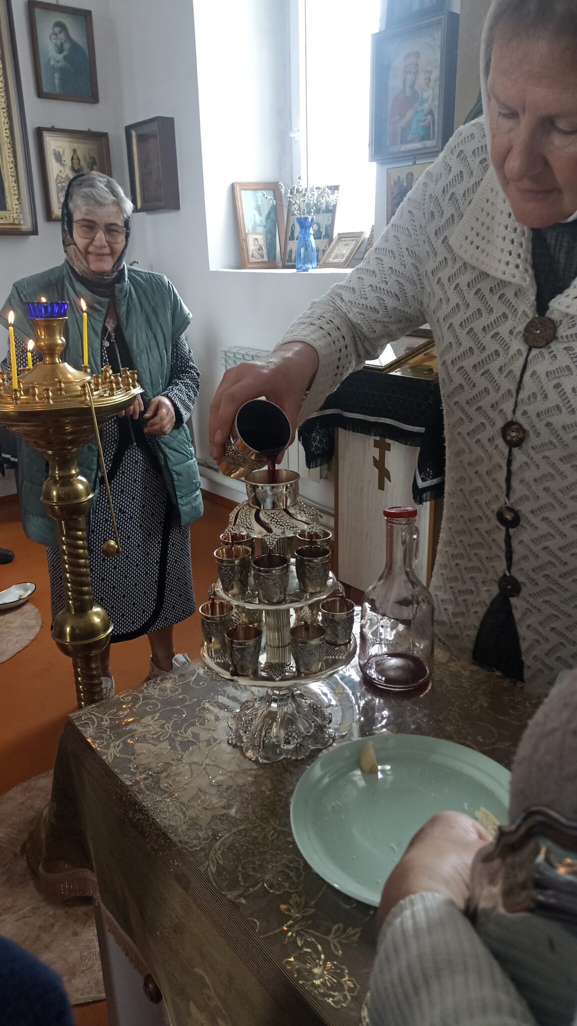 По окончании Божественной литургии настоятель отец Андрей совершил традиционное освящение пасхальной трапезы. Ряды румяных куличей и ярких яиц под сводами храма напомнили нам: пост позади, а впереди — ослепительный свет Пасхи, который уже совсем скоро озарит мир, как Благодатный огонь в Иерусалиме.