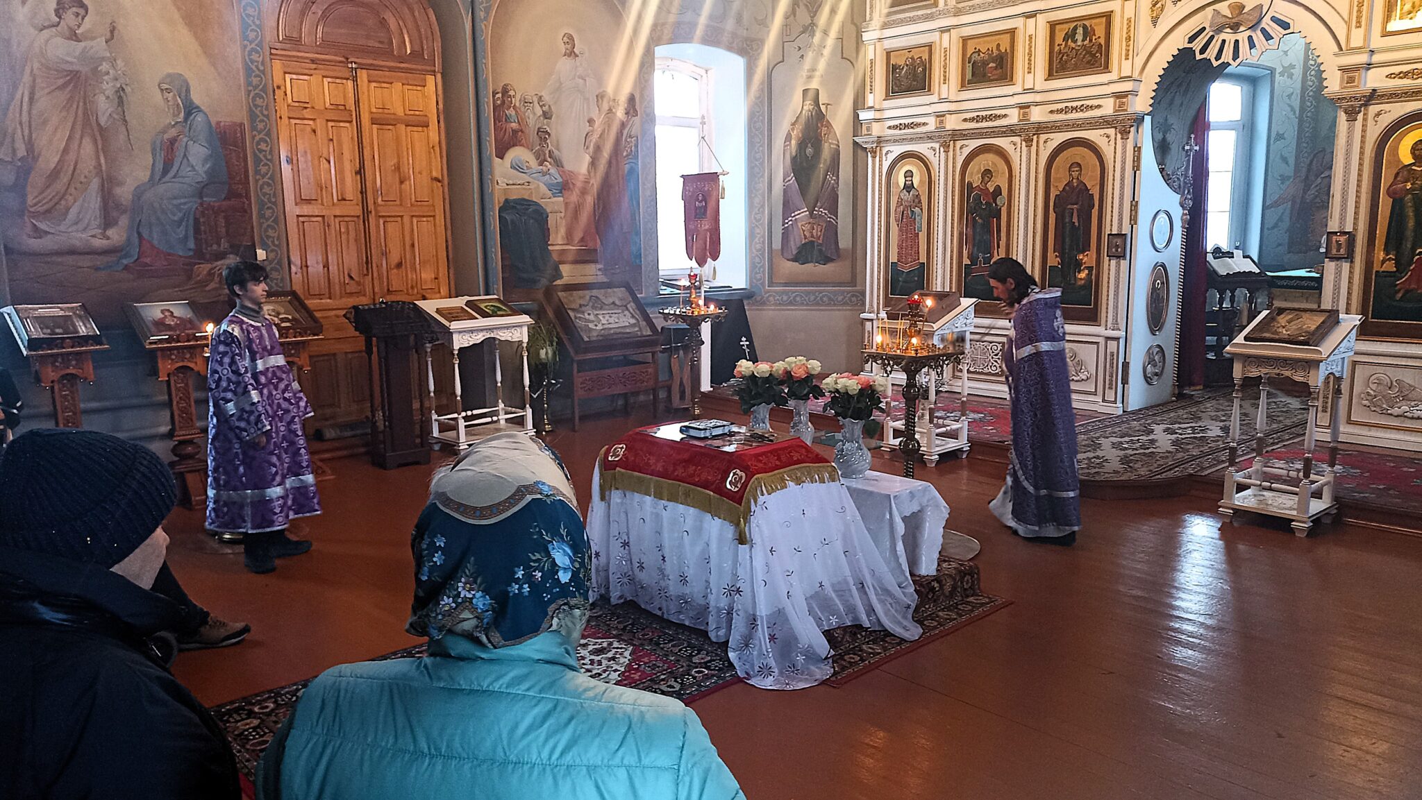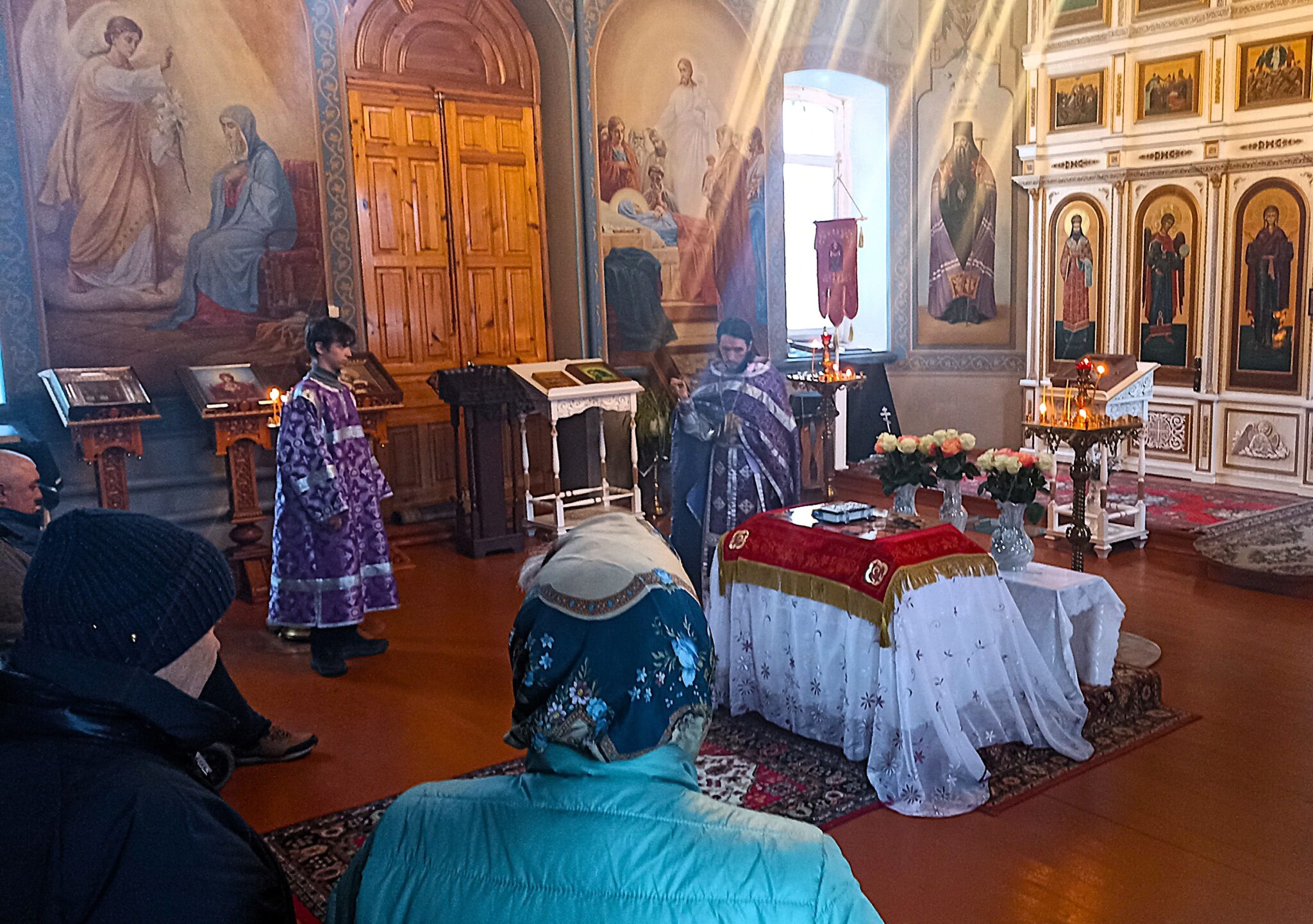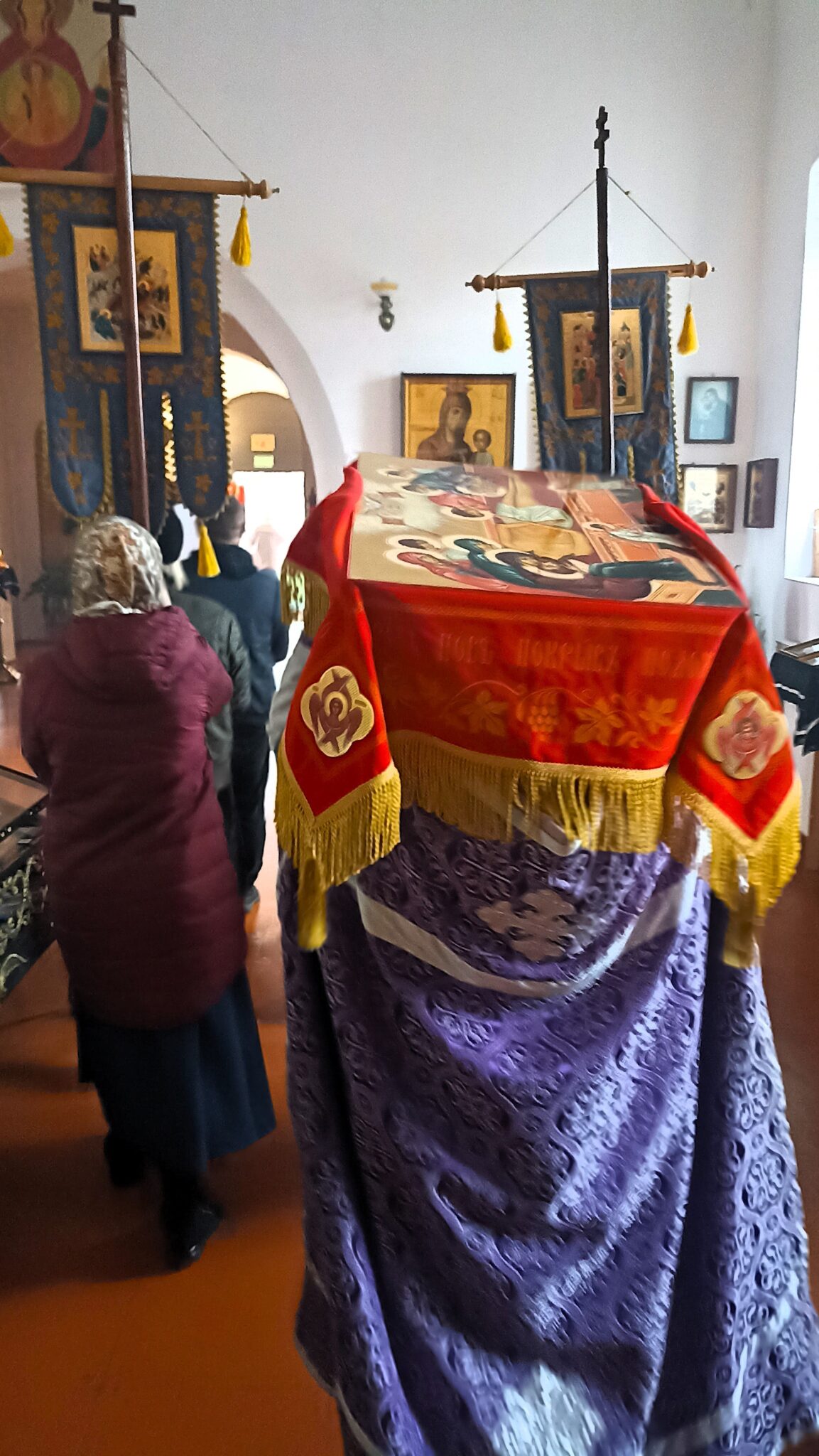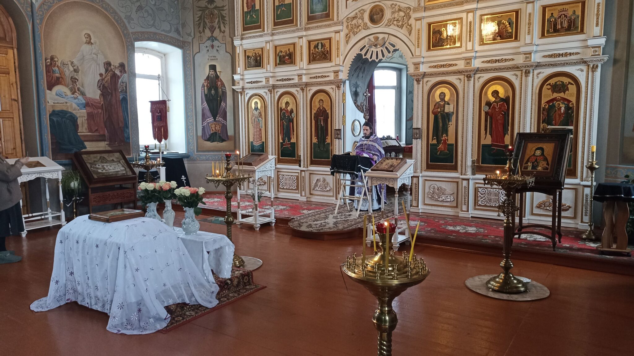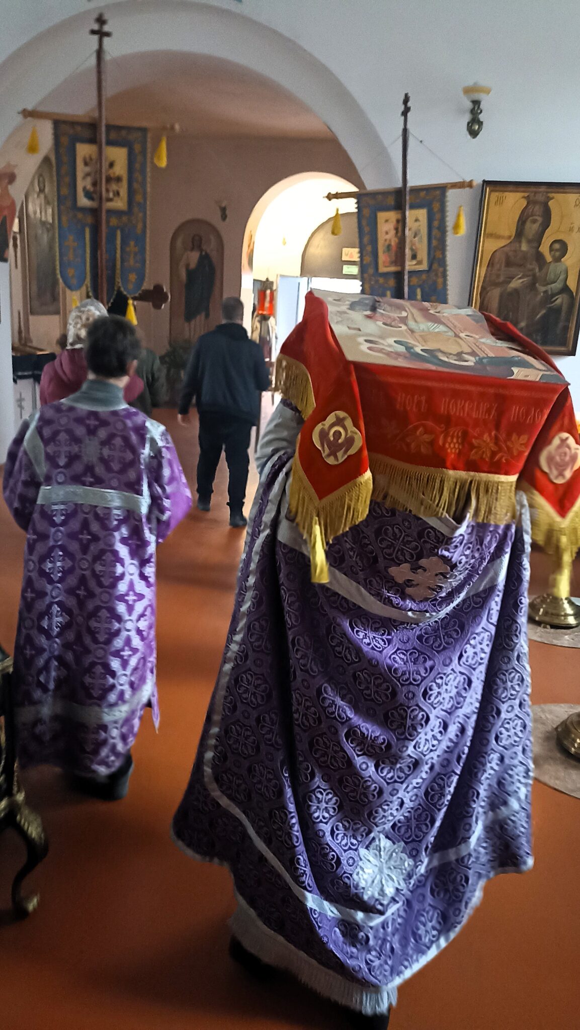 Под умилительное пение «Благообразный Иосиф» Святая Плащаница была вынесена на середину храма, став зримым образом божественного терпения. В тишине храма прозвучал канон «О распятии Господнем и на плач Пресвятой Богородицы» — скорбный и нежный диалог Матери с Сыном, наполняющий сердца тихим светом сострадания.