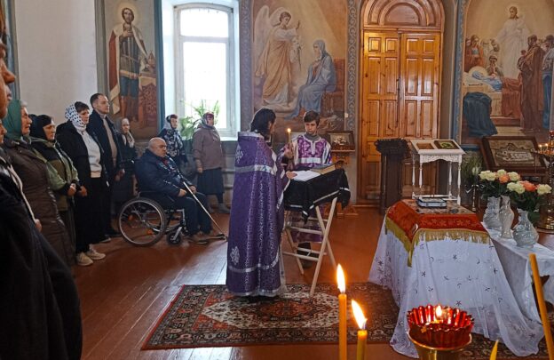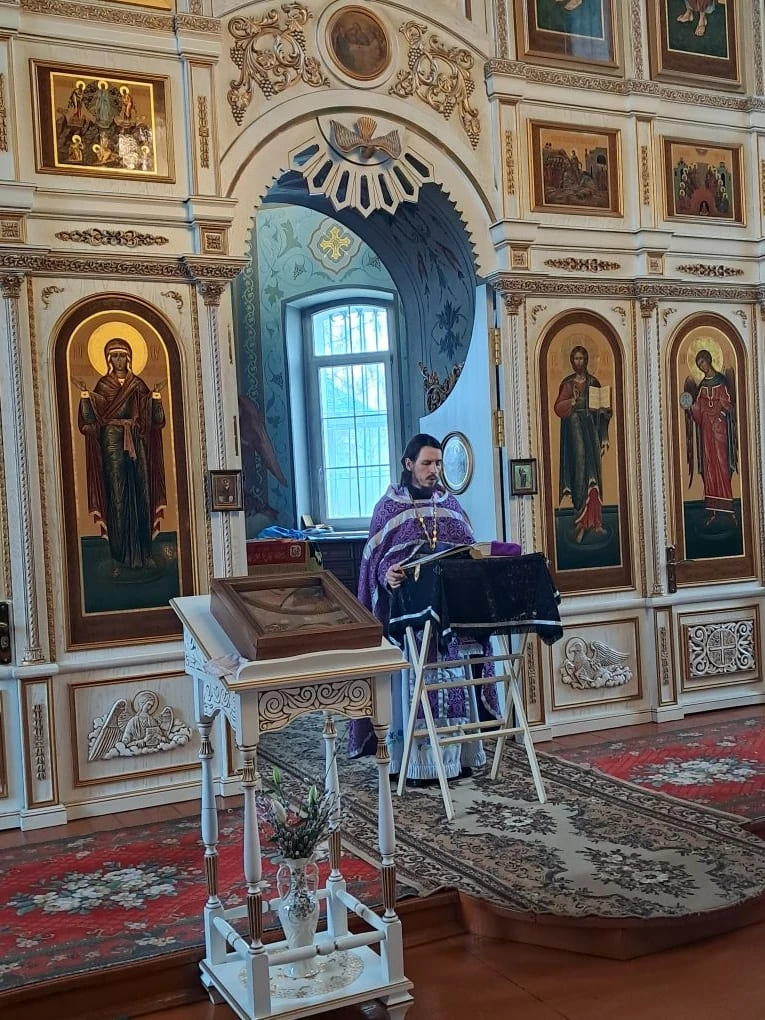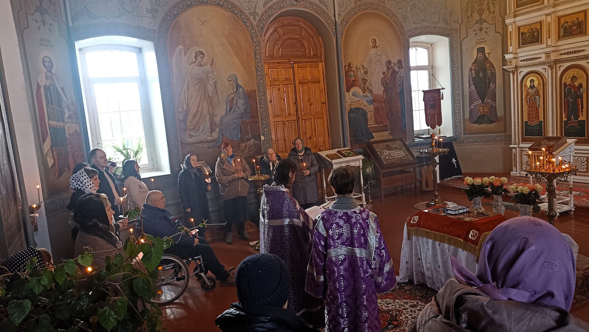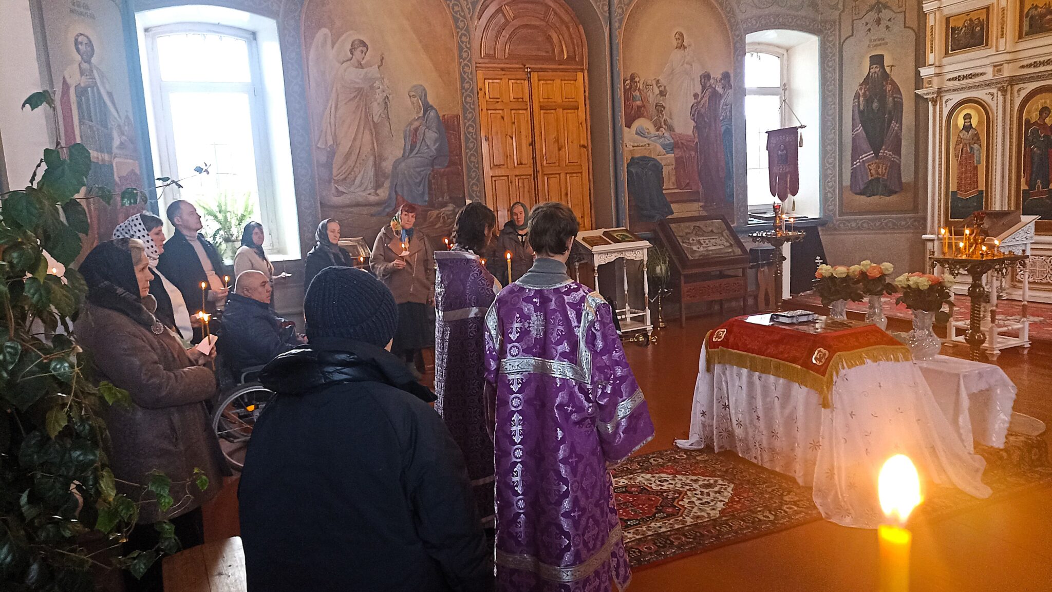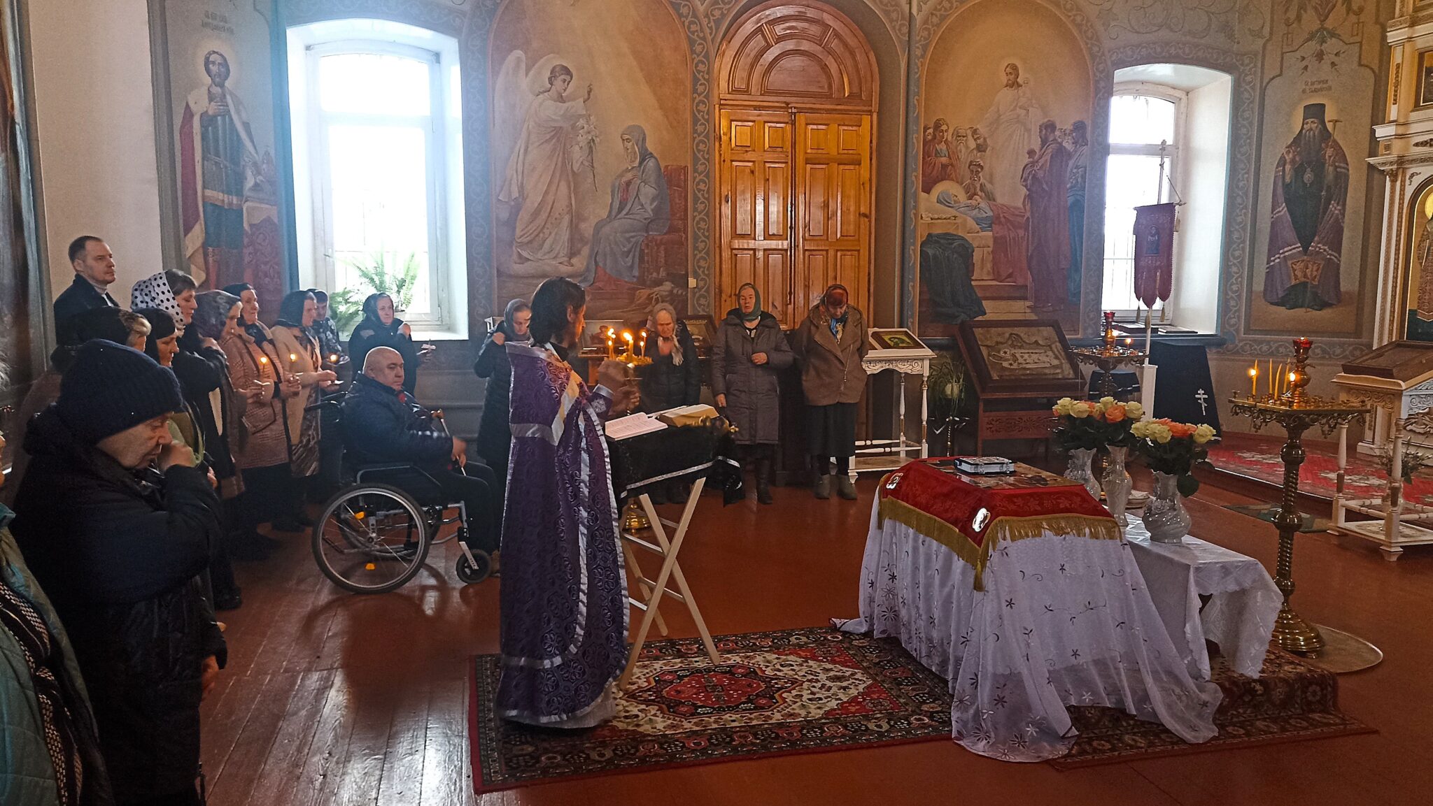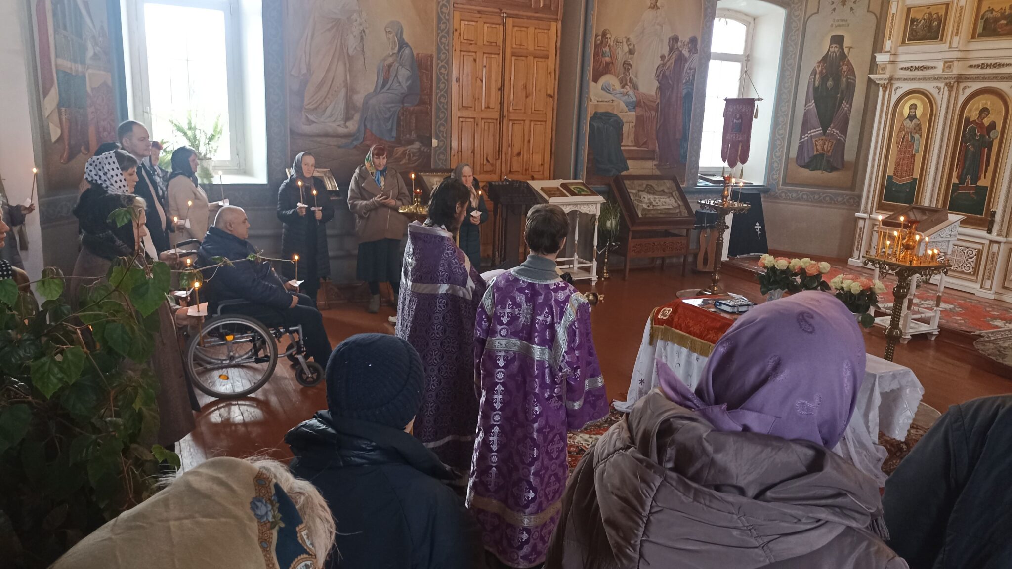 Под умилительное пение «Благообразный Иосиф» Святая Плащаница была вынесена на середину храма, став зримым образом божественного терпения. В тишине храма прозвучал канон «О распятии Господнем и на плач Пресвятой Богородицы» — скорбный и нежный диалог Матери с Сыном, наполняющий сердца тихим светом сострадания.